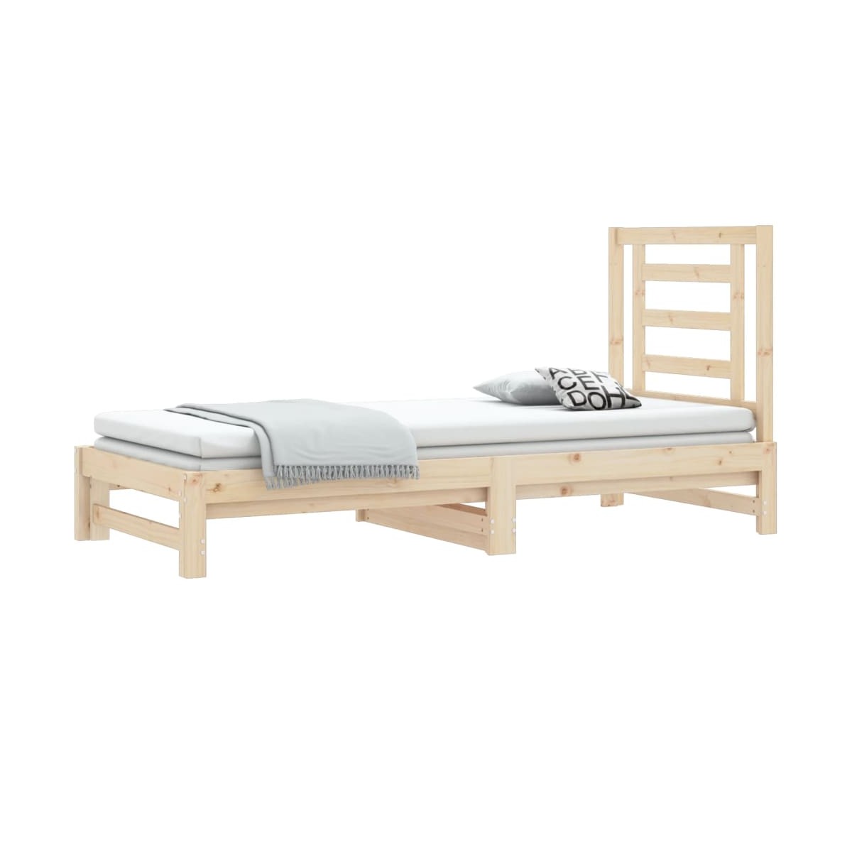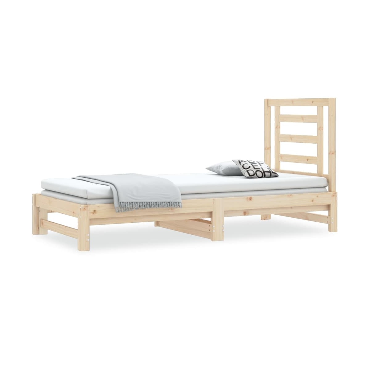 Este versátil sofá cama de madera se puede usar como cama en el dormitorio y también encaja a la perfección como sofá en el salón. Madera maciza de pino: La madera maciza de pino es un bonito material natural. La madera de pino tiene vetas rectas, y los nudos dan al material su distintivo aspecto rústico. Esta cama para invitados está hecha de madera maciza de pino, más estable y duradera.Diseño de listones: El somier de madera proporciona una mejor circulación del aire para mantener el colchón fresco durante más tiempo, además de mejorar la capacidad de carga de la cama y de asegurar su estabilidad.Uso sencillo: Este sofá cama resulta muy práctico de usar y no necesita un canapé ni una base. ¡Tan solo coloca el colchón encima y disfruta de un sueño reparador o descansa sentado!Sofá cama extraíble: Este sofá cama de madera se puede utilizar como sofá durante el día o como cama por la noche. Es una solución rápida para alojar invitados por la noche sin ocupar mucho espacio.Soporte cómodo: Esta cabecera de cama te brinda un excelente soporte para la espalda cuando te sientas en la cama para leer o ver películas. Nota:Ten en cuenta que la entrega incluye únicamente una estructura de cama. El colchón no está incluido. Puedes echar un vistazo a nuestra tienda para buscar el correspondiente colchón.Cada producto viene con un manual de montaje en la caja para facilitar el montaje.