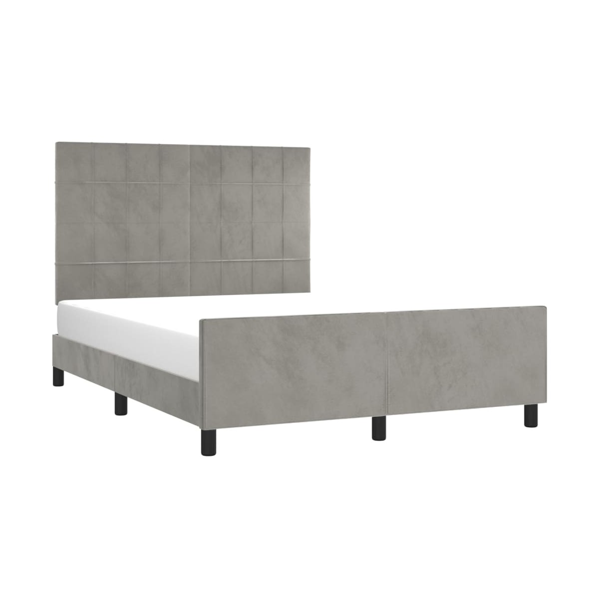 ¡Consigue un sueño más reparador con esta estructura de cama con cabecero! Es un aporte acogedor para cualquier dormitorio. Terciopelo suave: El terciopelo es una tela suave y lujosa, reconocida por su denso pelo de fibras cortadas de forma uniforme que tienen una suave pelusa. La tela de terciopelo posee un característico y suave tacto, lo que hace que sea cómoda al tacto.Altura regulable: El cabecero de la cama es ajustable en altura según tus preferencias.Patas de apoyo: La cama se apoya en patas robustas, que garantizan su estabilidad, seguridad y firmeza.Listones robustos: Los listones de madera contrachapada proporcionan una buena distribución del peso, lo que garantiza que el colchón se mantenga en tu sitio con cada giro y vuelta del cuerpo mientras duermes.Excelente apoyo: El cabecero de la cama te proporciona un excelente apoyo para la espalda mientras estás sentado en la cama para leer o ver la televisión. Nota:La entrega incluye solo una estructura de cama. El colchón no está incluido. Puedes echar un vistazo en nuestra tienda para buscar colchones a juego.Cada producto viene con un manual de montaje en la caja para facilitar el montaje.