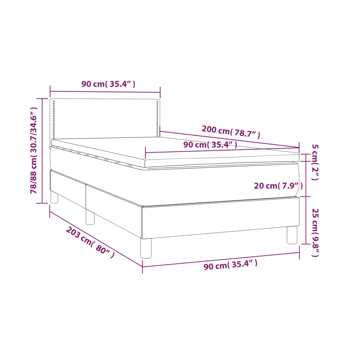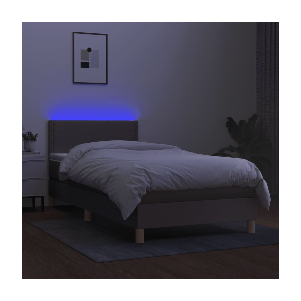 Utiliza esta cama box spring con colchón y LED para disfrutar de un sueño reparador. Es el centro de atención de tu dormitorio. Material de primera calidad: La tela posee un aspecto sencillo y limpio, y es transpirable y duradera.Cabecero práctico: El cabecero de la cama es ajustable en altura según tus preferencias. El cabecero de la cama te proporciona un excelente apoyo para la espalda mientras estás sentado en la cama para leer o ver la televisión.Tira de LED de colores: Alegra la oscuridad con luces LED de colores.Colchón de muelles ensacados: El muelle ensacado individual incorporado es conocido por su altísima calidad, al tiempo que garantiza un alto nivel de durabilidad y adaptabilidad. Puede absorber eficazmente el ruido y los golpes causados por los lanzamientos y los giros.Protector de colchón respetuoso con la piel: El protector de colchón tiene una funda de tejido resistente y respetuoso con la piel, que lo hace suave y confortable. Nota:Por razones de higiene, el colchón no puede devolverse si se ha quitado o abierto el embalaje.Cada producto viene con un manual de montaje en la caja para facilitar el montaje.Únicamente puedes cortar por la parte con el símbolo de las tijeras y únicamente la parte con el USB seguirá funcionando como antes.El producto tiene un conector USB, pero no se incluye la fuente de alimentación USB de 5 V certificada.