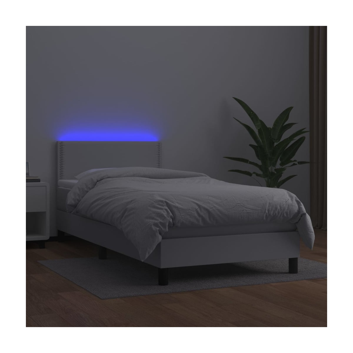 Utiliza esta cama box spring con colchón y LED para disfrutar de un sueño reparador. Es el centro de atención de tu dormitorio. Material duradero: El cuero sintético de primera calidad es un material muy duradero. Es resistente a las manchas, por lo que es fácil de limpiar con un paño húmedo. Además, la superficie lisa da un aspecto lujoso y la belleza del cuero auténtico.Cabecero práctico: El cabecero de la cama es ajustable en altura según tus preferencias. El cabecero de la cama te proporciona un excelente apoyo para la espalda mientras estás sentado en la cama para leer o ver la televisión.Tira de LED de colores: Alegra la oscuridad con luces LED de colores.Colchón de muelles ensacados: El muelle ensacado individual incorporado es conocido por su altísima calidad, al tiempo que garantiza un alto nivel de durabilidad y adaptabilidad. Puede absorber eficazmente el ruido y los golpes causados por los lanzamientos y los giros.Protector de colchón respetuoso con la piel: El protector de colchón tiene una funda de tejido resistente y respetuoso con la piel, que lo hace suave y confortable. Nota:Por razones de higiene, el colchón no puede devolverse si se ha quitado o abierto el embalaje.Cada producto viene con un manual de montaje en la caja para facilitar el montaje.Únicamente puedes cortar por la parte con el símbolo de las tijeras y únicamente la parte con el USB seguirá funcionando como antes.El producto tiene un conector USB, pero no se incluye la fuente de alimentación USB de 5 V certificada.