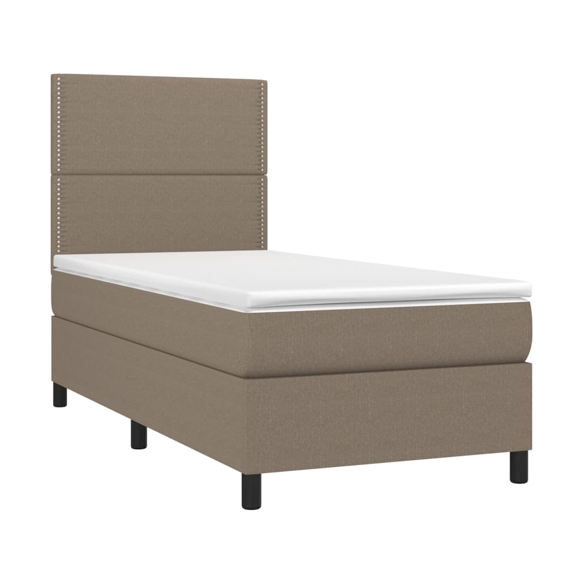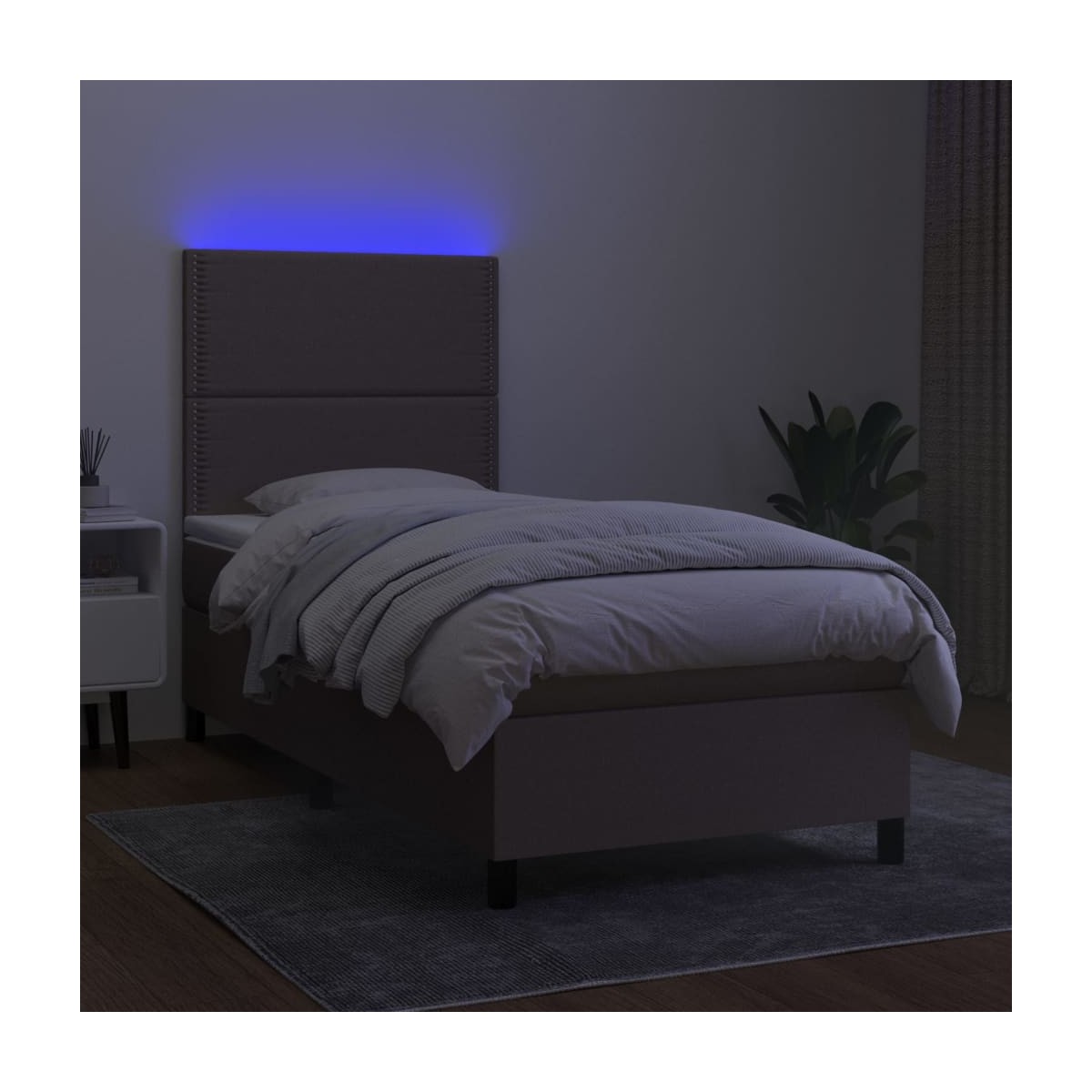 Utiliza esta cama box spring con colchón y LED para disfrutar de un sueño reparador. Es el centro de atención de tu dormitorio. Material de primera calidad: La tela posee un aspecto sencillo y limpio, y es transpirable y duradera.Cabecero práctico: El cabecero de la cama es ajustable en altura según tus preferencias. El cabecero de la cama te proporciona un excelente apoyo para la espalda mientras estás sentado en la cama para leer o ver la televisión.Tira de LED de colores: Alegra la oscuridad con luces LED de colores.Colchón de muelles ensacados: El muelle ensacado individual incorporado es conocido por su altísima calidad, al tiempo que garantiza un alto nivel de durabilidad y adaptabilidad. Puede absorber eficazmente el ruido y los golpes causados por los lanzamientos y los giros.Protector de colchón respetuoso con la piel: El protector de colchón tiene una funda de tejido resistente y respetuoso con la piel, que lo hace suave y confortable. Nota:Por razones de higiene, el colchón no puede devolverse si se ha quitado o abierto el embalaje.Únicamente puedes cortar por la parte con el símbolo de las tijeras y únicamente la parte con el USB seguirá funcionando como antes.Cada producto viene con un manual de montaje en la caja para facilitar el montaje.El producto tiene un conector USB, pero no se incluye la fuente de alimentación USB de 5 V certificada.