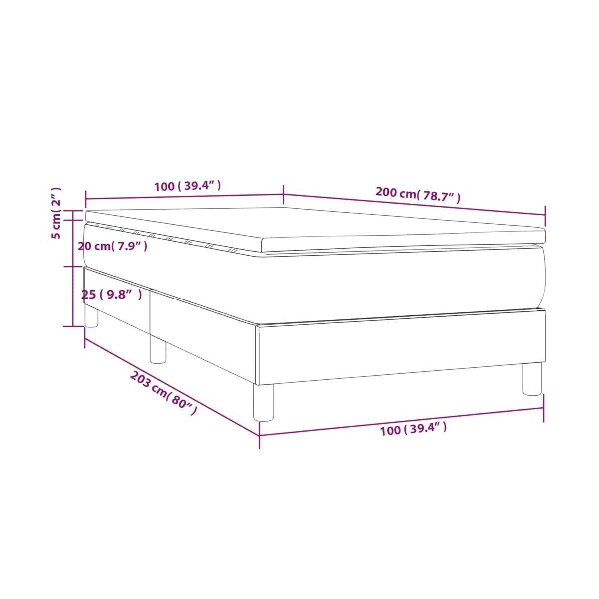 - Dimensiones: 203 x 100 x 25 cm (largo x ancho x alto)