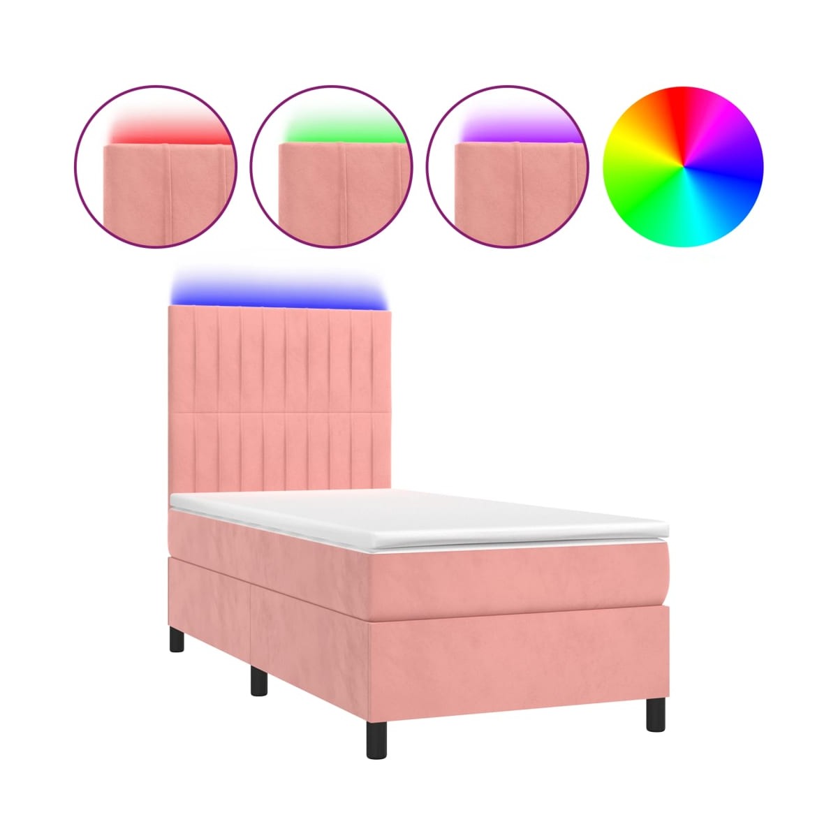 Utiliza esta cama box spring con colchón y LED para disfrutar de un sueño reparador. Es el centro de atención de tu dormitorio. Terciopelo suave: El terciopelo es una tela suave y lujosa, reconocida por su denso pelo de fibras cortadas de forma uniforme que tienen una suave pelusa. La tela de terciopelo posee un característico y suave tacto, lo que hace que sea cómoda al tacto.Cabecero práctico: El cabecero de la cama es ajustable en altura según tus preferencias. El cabecero de la cama te proporciona un excelente apoyo para la espalda mientras estás sentado en la cama para leer o ver la televisión.Tira de LED de colores: Alegra la oscuridad con luces LED de colores.Colchón de muelles ensacados: El muelle ensacado individual incorporado es conocido por su altísima calidad, al tiempo que garantiza un alto nivel de durabilidad y adaptabilidad. Puede absorber eficazmente el ruido y los golpes causados por los lanzamientos y los giros.Protector de colchón respetuoso con la piel: El protector de colchón tiene una funda de tejido resistente y respetuoso con la piel, que lo hace suave y confortable. Nota:Por razones de higiene, el colchón no puede devolverse si se ha quitado o abierto el embalaje.Únicamente puedes cortar por la parte con el símbolo de las tijeras y únicamente la parte con el USB seguirá funcionando como antes.Cada producto viene con un manual de montaje en la caja para facilitar el montaje.El producto tiene un conector USB, pero no se incluye la fuente de alimentación USB de 5 V certificada.