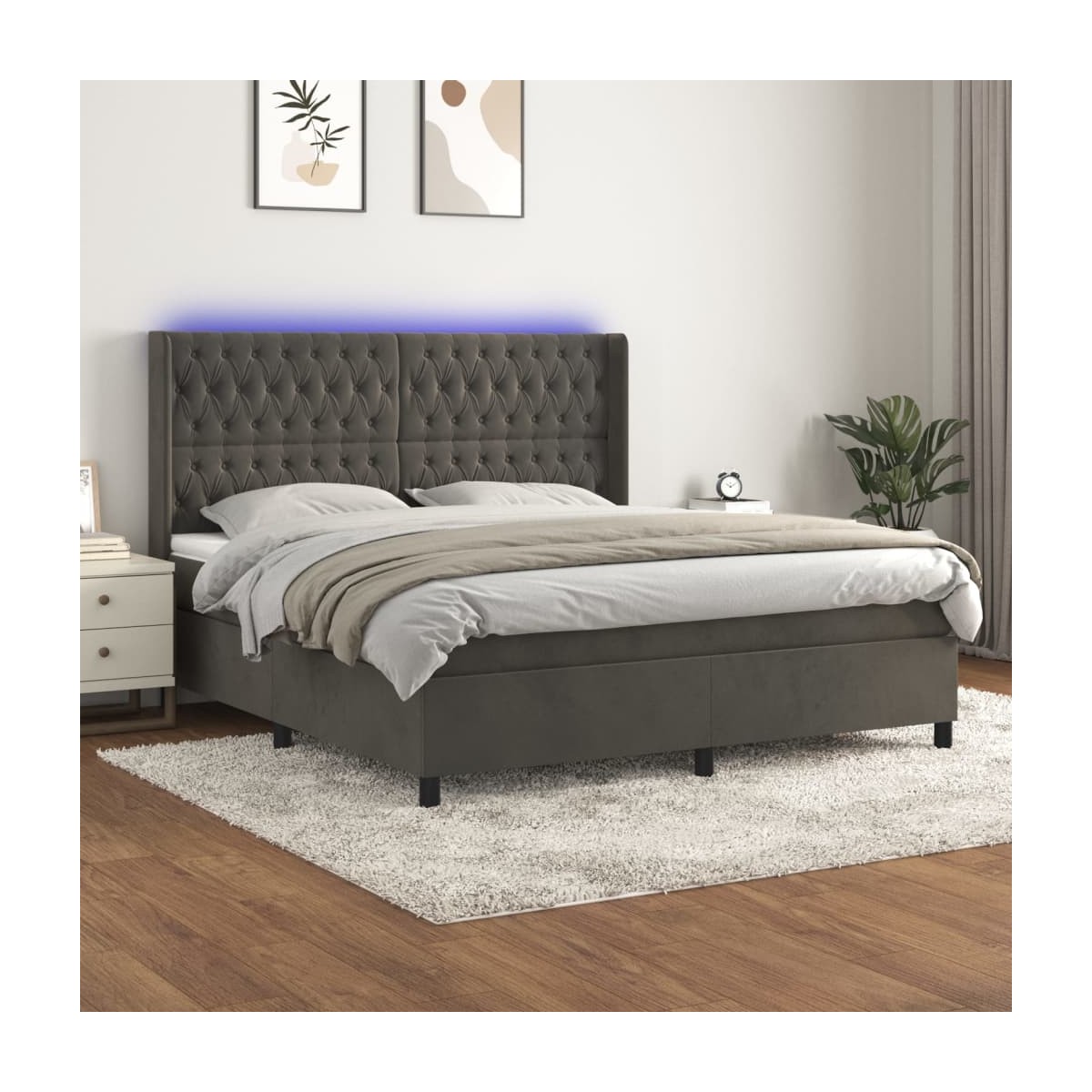 Utiliza esta cama box spring con colchón y LED para disfrutar de un sueño reparador. Es el centro de atención de tu dormitorio. Terciopelo suave: El terciopelo es una tela suave y lujosa, reconocida por su denso pelo de fibras cortadas de forma uniforme que tienen una suave pelusa. La tela de terciopelo posee un característico y suave tacto, lo que hace que sea cómoda al tacto.Cabecero práctico: El cabecero de la cama es ajustable en altura según tus preferencias. El cabecero de la cama te proporciona un excelente apoyo para la espalda mientras estás sentado en la cama para leer o ver la televisión.Tira de LED de colores: Alegra la oscuridad con luces LED de colores.Colchón de muelles ensacados: El muelle ensacado individual incorporado es conocido por su altísima calidad, al tiempo que garantiza un alto nivel de durabilidad y adaptabilidad. Puede absorber eficazmente el ruido y los golpes causados por los lanzamientos y los giros.Protector de colchón respetuoso con la piel: El protector de colchón tiene una funda de tejido resistente y respetuoso con la piel, que lo hace suave y confortable. Nota:Por razones de higiene, el colchón no puede devolverse si se ha quitado o abierto el embalaje.Únicamente puedes cortar por la parte con el símbolo de las tijeras y únicamente la parte con el USB seguirá funcionando como antes.Cada producto viene con un manual de montaje en la caja para facilitar el montaje.El producto tiene un conector USB, pero no se incluye la fuente de alimentación USB de 5 V certificada.