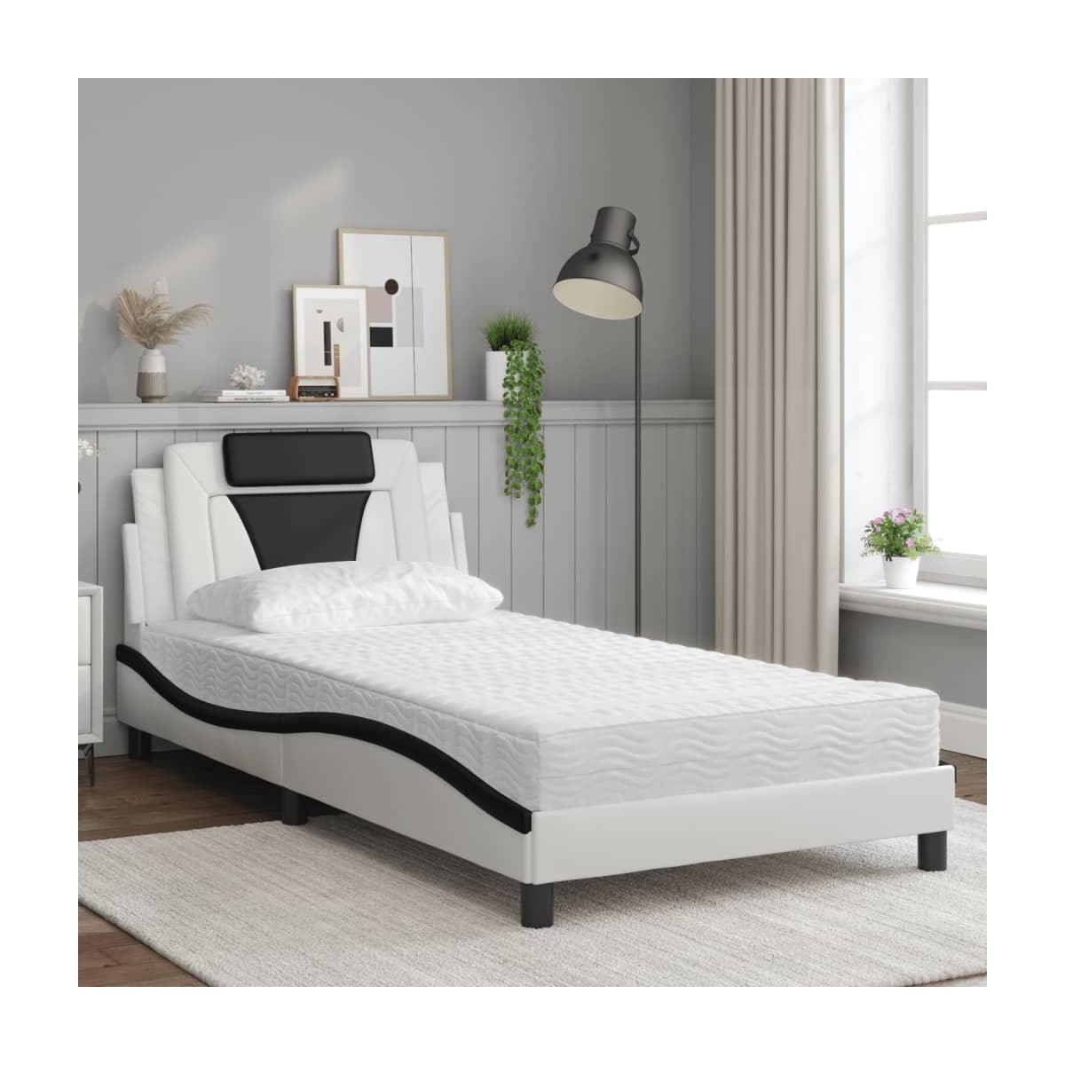 ¡Consigue tener un sueño más reparador en esta cama con colchón! Es un aporte acogedor para cualquier dormitorio. Material duradero: El cuero sintético de primera calidad es un material muy duradero. Es resistente a las manchas, por lo que es fácil de limpiar con un paño húmedo. Además, la superficie lisa da un aspecto lujoso y la belleza del cuero auténtico. Listones robustos: Los listones de madera contrachapada proporcionan una buena distribución del peso, lo que garantiza que el colchón se mantenga en tu sitio con cada giro y vuelta del cuerpo mientras duermes. Excelente soporte: El cabecero acolchado está relleno de espuma para una comodidad ultrasuave y óptima, lo que te brinda un excelente soporte para la espalda mientras estás sentado en la cama para leer o ver la televisión. Colchón de espuma: Este colchón de cama de tela de 3 capas está relleno de espuma de PU 22D para ofrecer un confort óptimo. Alivia el cansancio y favorece la circulación sanguínea, con el fin de ofrecerte una relajación completa y una buena calidad de sueño. Además, el colchón está disponible en dureza H2 y H3, por lo que solo tienes que girarlo para elegir la dureza que más te convenga. Diseño lateral ondulado: El look ondulado de la estructura de la cama es elegante y sofisticado, agregando un toque moderno y elegante a tu decoración, convirtiéndolo en el foco de atención de tu dormitorio.