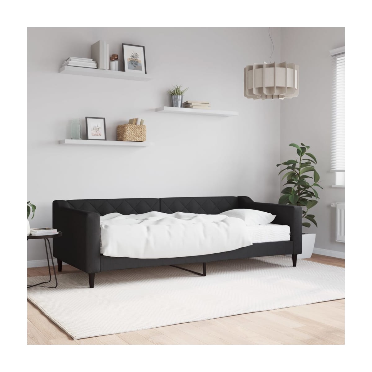 Este sofá cama 2 en 1 con colchón, que sirve como sofá y cama, es un complemento práctico y llamativo para tu salón o dormitorio. Sofá cama versátil: El sofá cama puede utilizarse como sofá durante el día o como cama por la noche, para tener una solución rápida para alojar a invitados que pasen la noche.Cómodo colchón de espuma: Esta cama se suministra con un colchón de espuma para un máximo apoyo y una comodidad óptima.Tela duradera y construcción sólida: Este sofá cama tiene una estructura resistente hecha de madera y metal y está tapizado con una tela duradera y cómoda.Diseño moderno: ¡El sofá cama tiene un diseño moderno con líneas nítidas, un aspecto minimalista y añadirá un estilo moderno a la casa!