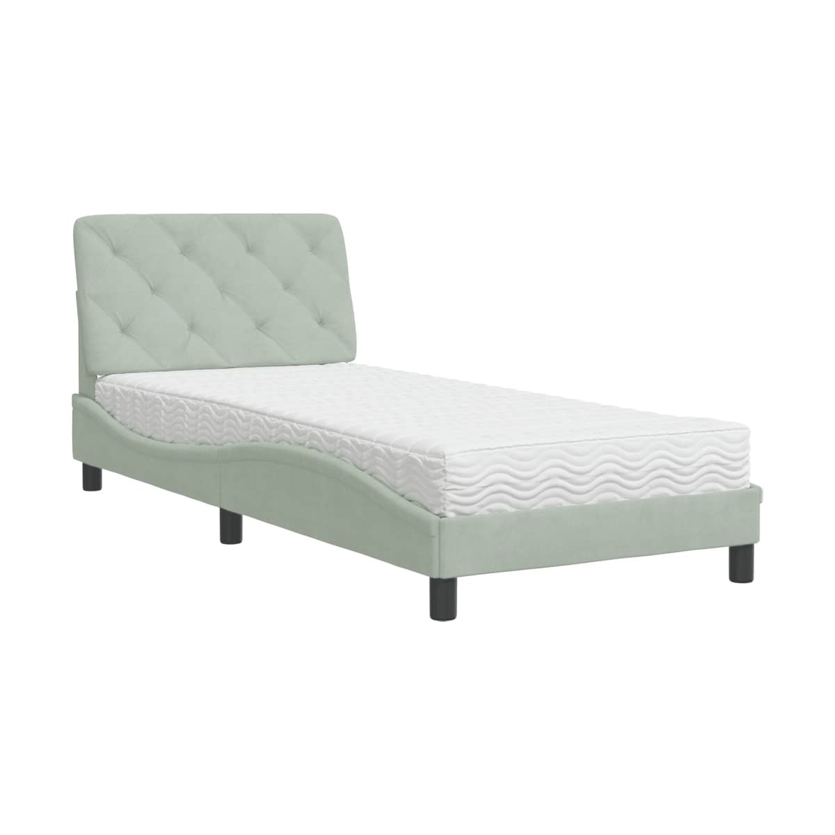 ¡Consigue tener un sueño más reparador en esta cama con colchón! Es un aporte acogedor para cualquier dormitorio. Terciopelo suave: El terciopelo es una tela suave y cálida, agradable al tacto.Listones robustos: Los listones de madera contrachapada proporcionan una buena distribución del peso, lo que garantiza que el colchón se mantenga en tu sitio con cada giro y vuelta del cuerpo mientras duermes.Excelente apoyo: El cabecero de la cama te proporciona un excelente apoyo para la espalda mientras estás sentado en la cama para leer o ver la televisión.Colchón de espuma: Este colchón de cama de tela de 3 capas está relleno de espuma de PU 22D para ofrecer un confort óptimo. Alivia el cansancio y favorece la circulación sanguínea, con el fin de ofrecerte una relajación completa y una buena calidad de sueño. Además, el colchón está disponible en dureza H2 y H3, por lo que solo tienes que girarlo para elegir la dureza que más te convenga.Diseño lateral ondulado: El look ondulado de la estructura de la cama es elegante y sofisticado, agregando un toque moderno y elegante a tu decoración, convirtiéndolo en el foco de atención de tu dormitorio.