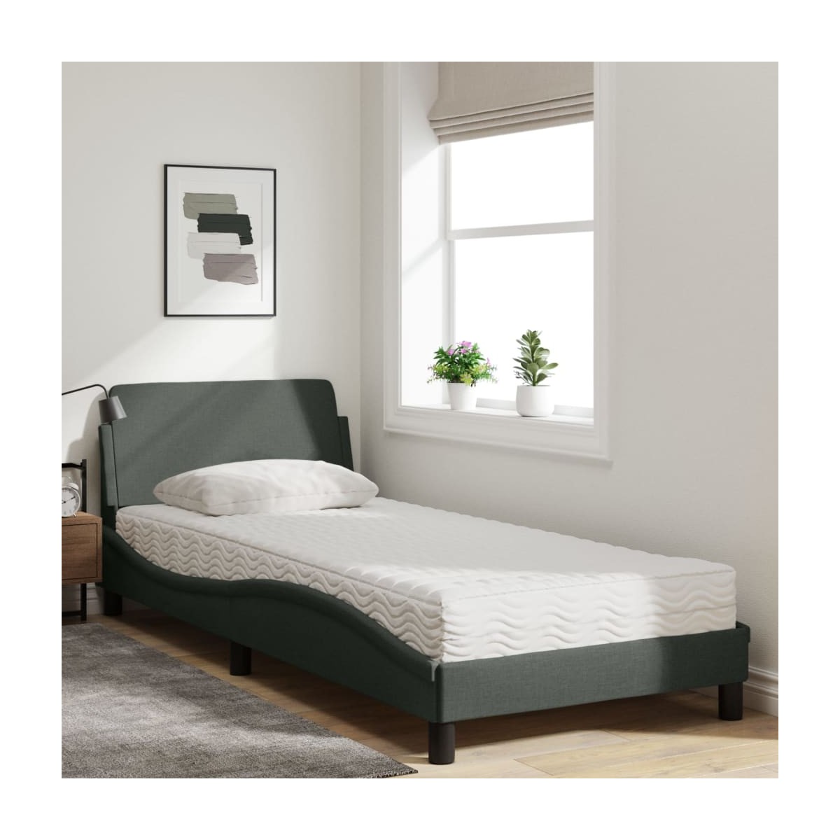 ¡Consigue tener un sueño más reparador en esta cama con colchón! Es un aporte acogedor para cualquier dormitorio. Material de primera calidad: La tela posee un aspecto sencillo y limpio, y es transpirable y duradera.Listones robustos: Los listones de madera contrachapada proporcionan una buena distribución del peso, lo que garantiza que el colchón se mantenga en tu sitio con cada giro y vuelta del cuerpo mientras duermes.Excelente apoyo: El cabecero de la cama te proporciona un excelente apoyo para la espalda mientras estás sentado en la cama para leer o ver la televisión.Colchón de espuma: Este colchón de cama de tela de 3 capas está relleno de espuma de PU 22D para ofrecer un confort óptimo. Alivia el cansancio y favorece la circulación sanguínea, con el fin de ofrecerte una relajación completa y una buena calidad de sueño. Además, el colchón está disponible en dureza H2 y H3, por lo que solo tienes que girarlo para elegir la dureza que más te convenga.Diseño lateral ondulado: El look ondulado de la estructura de la cama es elegante y sofisticado, agregando un toque moderno y elegante a tu decoración, convirtiéndolo en el foco de atención de tu dormitorio.