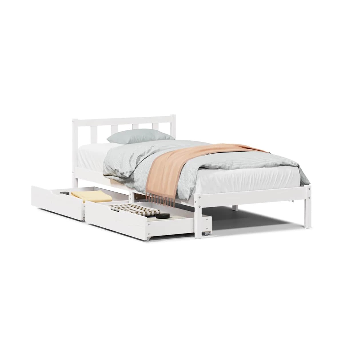 Consigue un sueño más reparador con esta estructura de cama. Es un aporte acogedor para cualquier dormitorio. Estructura estable y duradera: La madera de pino maciza es conocida por su resistencia y durabilidad. Sus vetas rectas y sus característicos nudos contribuyen a su encanto rústico.Somier de láminas para un soporte óptimo: La estructura de cama está equipada con un somier de láminas para el apoyo y la transpirabilidad del colchón.Aprovecha al máximo el espacio: Esta estructura de cama cuenta con dos cajones debajo, que proporcionan almacenamiento para artículos como ropa de cama extra, ropa de temporada y juguetes.Maniobrabilidad sin esfuerzo: Este cajón de almacenamiento bajo la cama cuenta con cuatro ruedas, que proporcionan una maniobrabilidad suave y sin esfuerzo para deslizarse dentro y fuera de debajo de tu cama. Información útil:El colchón no está incluido con la cama. Disponemos de una variada selección de colchones. Puedes echar un vistazo a nuestra tienda para buscar el colchón correspondiente.