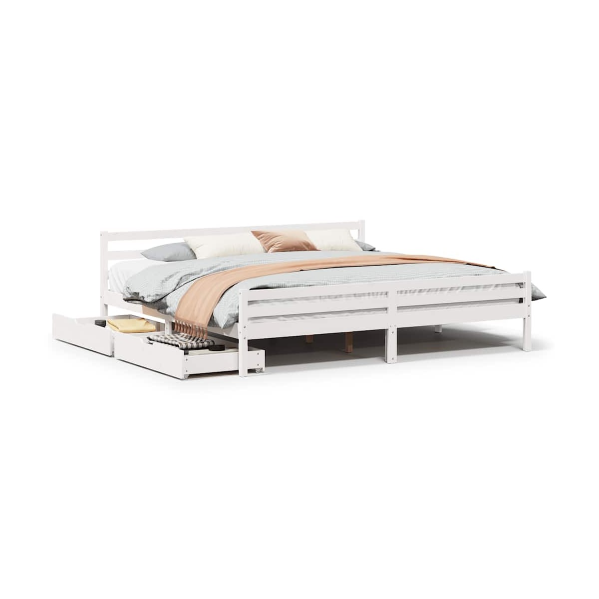 Consigue un sueño más reparador con esta estructura de cama. Es un aporte acogedor para cualquier dormitorio. Estructura estable y duradera: La madera de pino maciza es conocida por su resistencia y durabilidad. Sus vetas rectas y sus característicos nudos contribuyen a su encanto rústico.Somier de láminas para un soporte óptimo: La estructura de cama está equipada con un somier de láminas para el apoyo y la transpirabilidad del colchón.Aprovecha al máximo el espacio: Esta estructura de cama cuenta con dos cajones debajo, que proporcionan almacenamiento para artículos como ropa de cama extra, ropa de temporada y juguetes.Maniobrabilidad sin esfuerzo: Este cajón de almacenamiento bajo la cama cuenta con cuatro ruedas, que proporcionan una maniobrabilidad suave y sin esfuerzo para deslizarse dentro y fuera de debajo de tu cama. Información útil:El colchón no está incluido con la cama. Disponemos de una variada selección de colchones. Puedes echar un vistazo a nuestra tienda para buscar el colchón correspondiente.