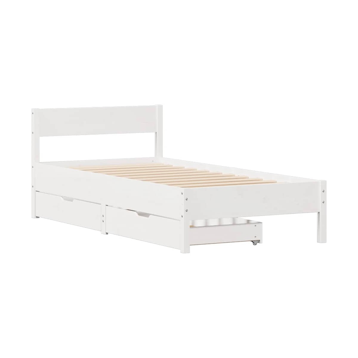 Consigue un sueño más reparador con esta estructura de cama. Es un aporte acogedor para cualquier dormitorio. Estructura estable y duradera: La madera de pino maciza es conocida por su resistencia y durabilidad. Sus vetas rectas y sus característicos nudos contribuyen a su encanto rústico.Somier de láminas para un soporte óptimo: La estructura de cama está equipada con un somier de láminas para el apoyo y la transpirabilidad del colchón.Cabecero versátil: Esta estructura de cama viene con un cabecero que proporciona un excelente soporte para la espalda cuando te sientas en la cama para leer o ver la televisión, a la vez que sirve como elemento decorativo.Aproveche al máximo el espacio: Este somier cuenta con dos cajones debajo, que proporcionan almacenamiento para artículos como ropa de cama extra, ropa de temporada y juguetes.Maniobrabilidad sin esfuerzo: Este cajón de almacenamiento bajo la cama cuenta con cuatro ruedas, que proporcionan una maniobrabilidad suave y sin esfuerzo para deslizarse dentro y fuera de debajo de tu cama. Información útil:El colchón no está incluido con la cama. Disponemos de una variada selección de colchones. Puedes echar un vistazo a nuestra tienda para buscar el colchón correspondiente.