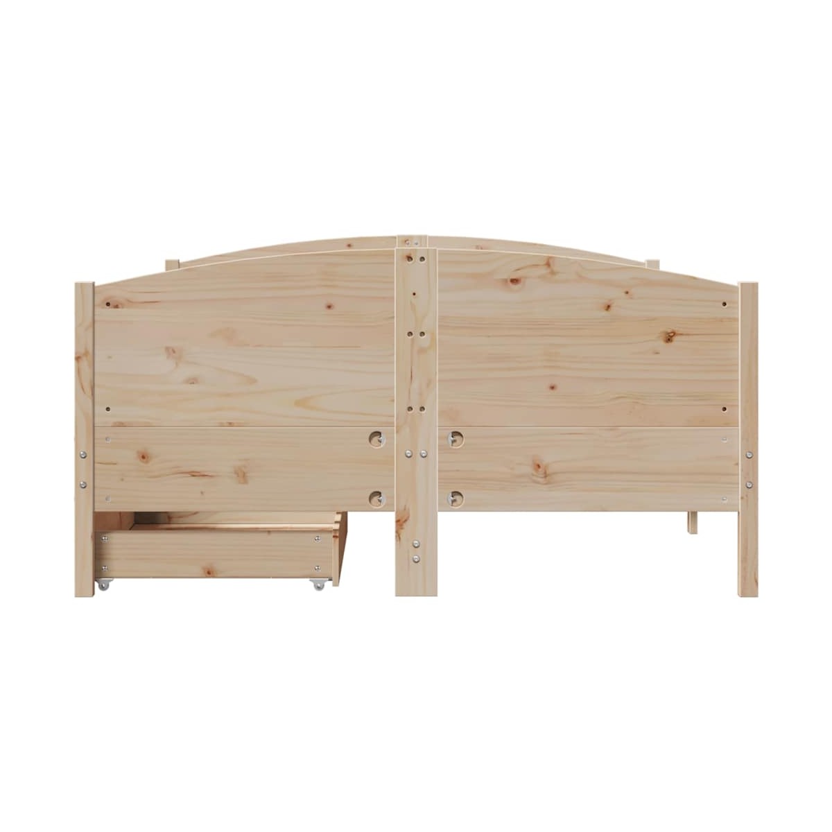 Consigue un sueño más reparador con esta estructura de cama. Es un aporte acogedor para cualquier dormitorio. Estructura estable y duradera: La madera de pino maciza es conocida por su resistencia y durabilidad. Sus vetas rectas y sus característicos nudos contribuyen a su encanto rústico.Somier de láminas para un soporte óptimo: La estructura de cama está equipada con un somier de láminas para el apoyo y la transpirabilidad del colchón.Cabecero versátil: Esta estructura de cama viene con un cabecero que proporciona un excelente soporte para la espalda cuando te sientas en la cama para leer o ver la televisión, a la vez que sirve como elemento decorativo.Aproveche al máximo el espacio: Este somier cuenta con dos cajones debajo, que proporcionan almacenamiento para artículos como ropa de cama extra, ropa de temporada y juguetes.Maniobrabilidad sin esfuerzo: Este cajón de almacenamiento bajo la cama cuenta con cuatro ruedas, que proporcionan una maniobrabilidad suave y sin esfuerzo para deslizarse dentro y fuera de debajo de tu cama. Información útil:El colchón no está incluido con la cama. Disponemos de una variada selección de colchones. Puedes echar un vistazo a nuestra tienda para buscar el colchón correspondiente.