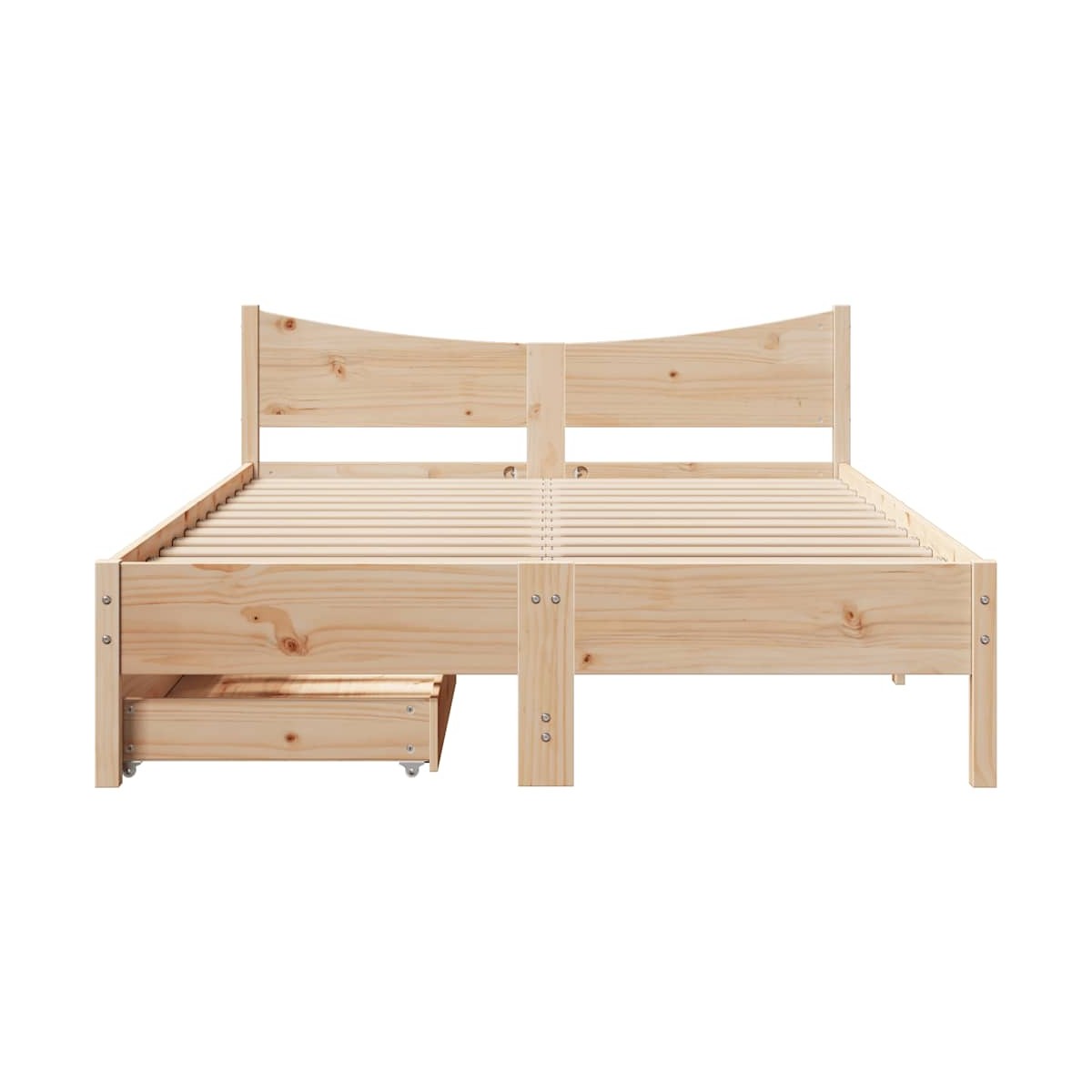 Consigue un sueño más reparador con esta estructura de cama. Es un aporte acogedor para cualquier dormitorio. Estructura estable y duradera: La madera de pino maciza es conocida por su resistencia y durabilidad. Sus vetas rectas y sus característicos nudos contribuyen a su encanto rústico.Somier de láminas para un soporte óptimo: La estructura de cama está equipada con un somier de láminas para el apoyo y la transpirabilidad del colchón.Aproveche al máximo el espacio: Este somier cuenta con dos cajones debajo, que proporcionan almacenamiento para artículos como ropa de cama extra, ropa de temporada y juguetes.Maniobrabilidad sin esfuerzo: Este cajón de almacenamiento bajo la cama cuenta con cuatro ruedas, que proporcionan una maniobrabilidad suave y sin esfuerzo para deslizarse dentro y fuera de debajo de tu cama. Información útil:El colchón no está incluido con la cama. Disponemos de una variada selección de colchones. Puedes echar un vistazo a nuestra tienda para buscar el colchón correspondiente.