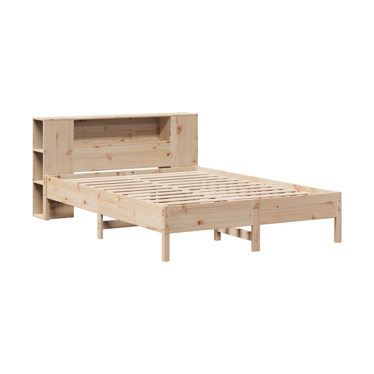 ¡Consigue una mejor noche de sueño reparador con esta cama con estantería! Es un aporte acogedor para cualquier dormitorio. Estructura estable y duradera: La madera de pino maciza es conocida por su resistencia y durabilidad. Sus vetas rectas y sus característicos nudos contribuyen a su encanto rústico. Somier de láminas para un soporte óptimo: La estructura de cama está equipada con un somier de láminas para el apoyo y la transpirabilidad del colchón. Amplio espacio de almacenamiento: El cabecero de estantería ofrece un amplio espacio de almacenamiento para mantener libros, artículos decorativos o pertenencias personales al alcance de la mano, lo que reduce el desorden en el dormitorio. Ahorro de espacio: Este cabecero es una opción de ahorro de espacio que puede sustituir la necesidad de una mesilla de noche, ayudando a maximizar el espacio de tu dormitorio, y haciéndolo ideal para espacios pequeños o limitados. Información útil:El colchón no está incluido con la cama. Disponemos de una variada selección de colchones. Puedes echar un vistazo a nuestra tienda para buscar el colchón correspondiente.