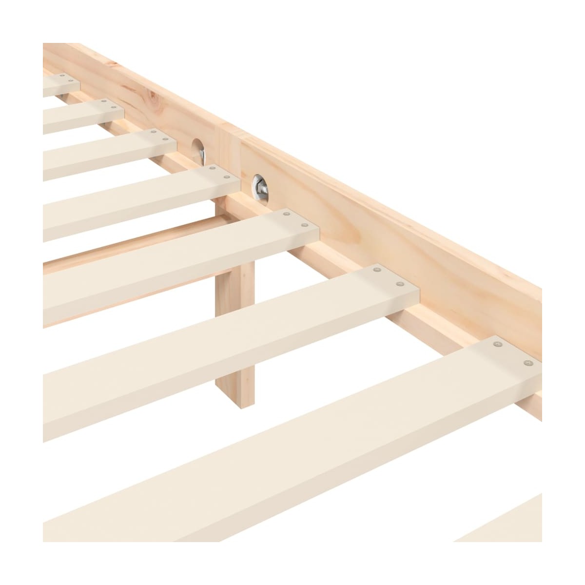 ¡Disfruta de una buena noche de sueño en esta estructura de cama de madera! Es un aporte práctico y decorativo para la casa. Material duradero: La madera maciza de pino es un hermoso material natural. La madera de pino tiene vetas rectas, y los nudos dan al material su distintivo aspecto rústico. Hecha de madera maciza de pino, esta cama es resistente y duradera.Listones de madera contrachapada: Los listones de madera contrachapada ofrecen una buena distribución del peso, lo que garantiza el tan necesario soporte y la transpirabilidad del colchón.Excelente soporte: El cabecero de cama de madera te ofrece un excelente soporte para la espalda cuando te sientas en la cama para leer o mirar la televisión. Información útil:El colchón no está incluido con la cama. Disponemos de una variada selección de colchones. Puedes echar un vistazo a nuestra tienda para buscar el colchón correspondiente.