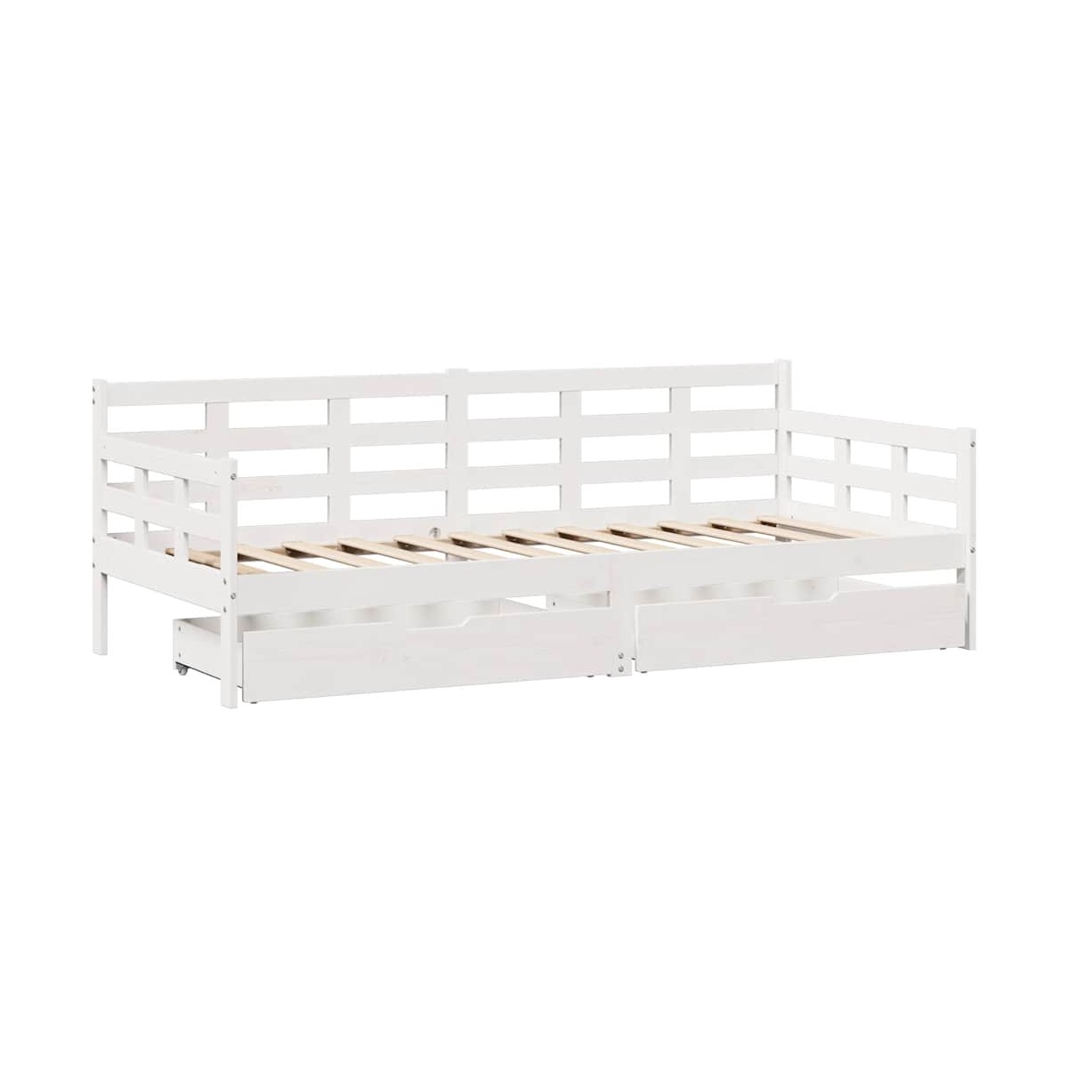Este sofá cama 2 en 1 con cajones, que sirve como sofá y cama, es un complemento práctico y llamativo para tu salón o dormitorio. Estructura estable y duradera: La madera de pino maciza es conocida por su resistencia y durabilidad. Sus vetas rectas y sus característicos nudos contribuyen a su encanto rústico.Barreras de cama de 3 lados: Esta cama tiene un diseño único en el lateral de la cama, que proporciona una sensación de seguridad y además añade un toque de estilo sofisticado a tu hogar.Listones para un soporte óptimo: El sofá cama se completa con listones para ofrecer un soporte esencial y transpirabilidad a tu colchón.Encanto rústico: El sofá cama da a tu espacio matices rústicos que pueden ser realmente relajantes. El efecto calmante de este sofá cama de madera convierte cualquier dormitorio o habitación de invitados en un lugar relajante, al tiempo que añade un elemento natural a la habitación.Amplio espacio de almacenamiento: Esta cama de invitados tiene dos cajones que brindan un amplio espacio para guardar ropa, calcetines, juguetes, cojines, etc. Información útil:El colchón no está incluido con la cama. Ofrecemos una variada selección de colchones. Puedes echar un vistazo a nuestra tienda para buscar el correspondiente colchón.