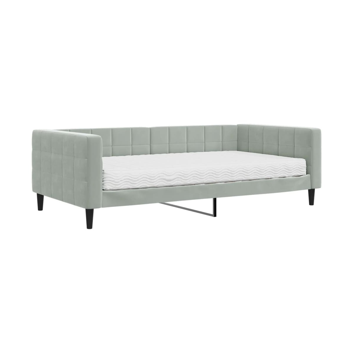 Este sofá cama 2 en 1 con colchón, que sirve como sofá y cama, es un complemento práctico y llamativo para tu salón o dormitorio. Sofá cama versátil: El sofá cama puede utilizarse como sofá durante el día o como cama por la noche, para tener una solución rápida para alojar a invitados que pasen la noche.Cómodo colchón de espuma: Esta cama se suministra con un colchón de espuma para un máximo apoyo y una comodidad óptima.Terciopelo suave y construcción sólida: Este sofá cama tiene una estructura resistente hecha de madera y metal y está tapizado en terciopelo suave y cómodo.Diseño moderno: ¡El sofá cama tiene un diseño moderno con líneas nítidas, un aspecto minimalista, así como luz natural, y añadirá un estilo moderno a la casa!