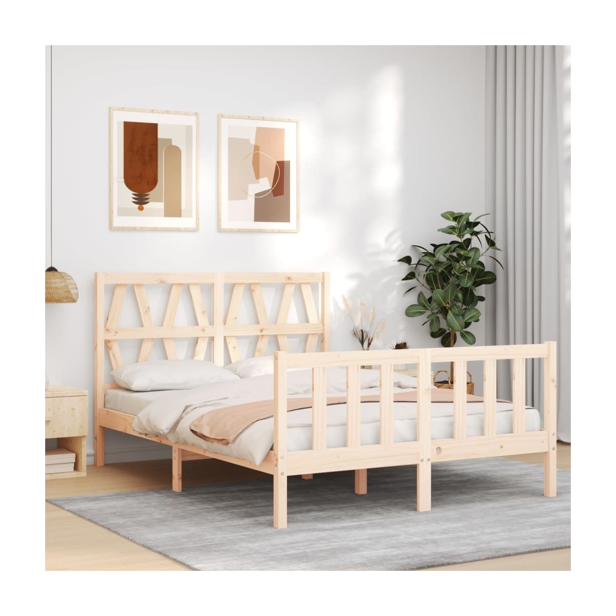 ¡Disfruta de una buena noche de sueño en esta estructura de cama de madera! Es un aporte práctico y decorativo para tu hogar. Material duradero: La madera maciza de pino es un hermoso material natural. La madera de pino tiene vetas rectas, y los nudos dan al material su distintivo aspecto rústico. Hecha de madera maciza de pino, esta cama es resistente y duradera.Listones de madera contrachapada: Los listones de madera contrachapada ofrecen una buena distribución del peso, lo que garantiza el tan necesario soporte y la transpirabilidad del colchón.Cabecero y estribo de cama útiles: El cabecero y el estribo de la cama de madera mantienen el colchón en su lugar. Además, la cabecera te brinda un excelente soporte para la espalda mientras estás sentado leyendo o mirando la televisión. Información útil: El colchón no está incluido con la cama. Ofrecemos una variada selección de colchones. Puedes echar un vistazo a nuestra tienda para buscar el colchón correspondiente.Algunas piezas del cabecero se empaquetan en las cajas de cartón de la estructura de la cama debido a las limitaciones de espacio.