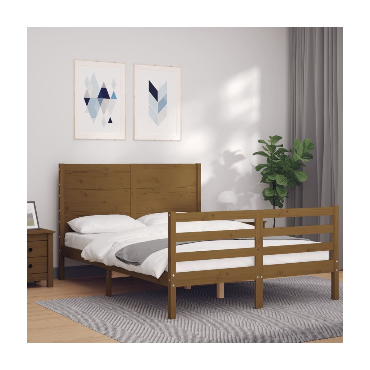 ¡Disfruta de una buena noche de sueño en esta estructura de cama de madera! Es un aporte práctico y decorativo para la casa. Material duradero: La madera maciza de pino es un hermoso material natural. La madera de pino tiene vetas rectas, y los nudos dan al material su distintivo aspecto rústico. Hecha de madera maciza de pino, esta cama es resistente y duradera.Listones de madera contrachapada: Los listones de madera contrachapada ofrecen una buena distribución del peso, lo que garantiza el tan necesario soporte y la transpirabilidad del colchón.Cabecero y estribo de cama útiles: El cabecero y el estribo de la cama de madera mantienen el colchón en su lugar. Además, la cabecera te brinda un excelente soporte para la espalda mientras estás sentado leyendo o mirando la televisión. Información útil: El colchón no está incluido con la cama. Disponemos de una variada selección de colchones. Puedes echar un vistazo a nuestra tienda para buscar el colchón correspondiente.