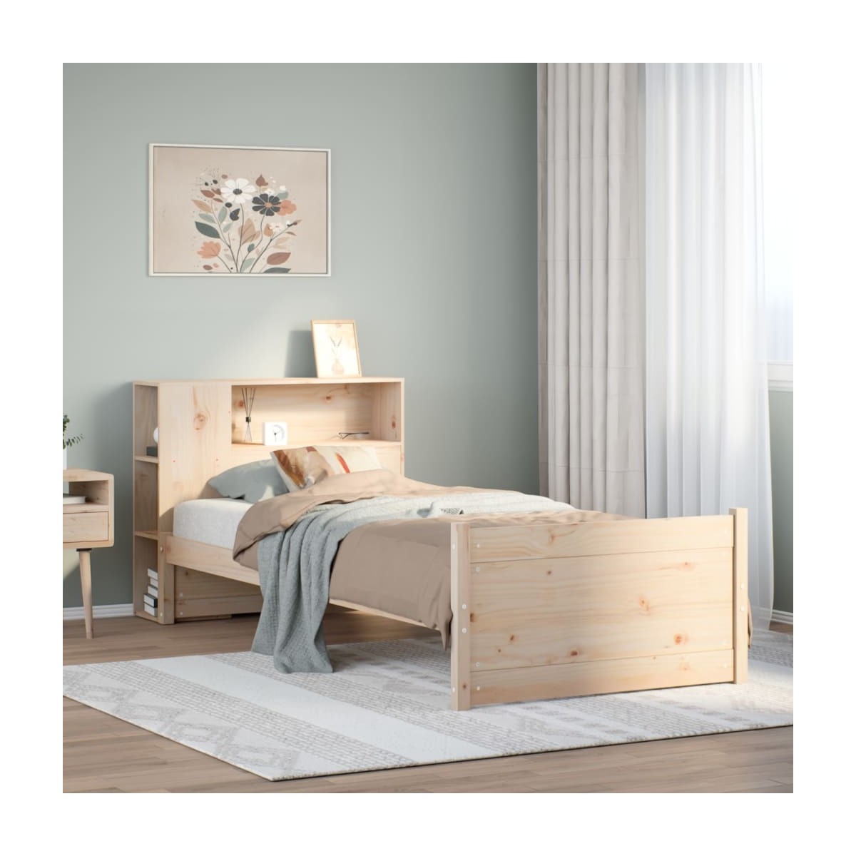 ¡Consigue una mejor noche de sueño reparador con esta cama con estantería! Es un aporte acogedor para cualquier dormitorio. Estructura estable y duradera: La madera de pino maciza es conocida por su resistencia y durabilidad. Sus vetas rectas y sus característicos nudos contribuyen a su encanto rústico. Somier de láminas para un soporte óptimo: La estructura de cama está equipada con un somier de láminas para el apoyo y la transpirabilidad del colchón. Amplio espacio de almacenamiento: El cabecero de estantería ofrece un amplio espacio de almacenamiento para mantener libros, artículos decorativos o pertenencias personales al alcance de la mano, lo que reduce el desorden en el dormitorio.Práctico pie de cama: El pie de cama no solo contribuye a la estabilidad general del marco de la cama, proporcionando un entorno seguro para dormir, sino que también asegura su colchón en su lugar y evita que las mantas, sábanas y otra ropa de cama se caigan del extremo de la cama, manteniendo una apariencia ordenada.Ahorro de espacio: Este cabecero es una opción de ahorro de espacio que puede sustituir la necesidad de una mesilla de noche, ayudando a maximizar el espacio de tu dormitorio, y haciéndolo ideal para espacios pequeños o limitados. Información útil:El colchón no está incluido con la cama. Disponemos de una variada selección de colchones. Puedes echar un vistazo a nuestra tienda para buscar el colchón correspondiente.