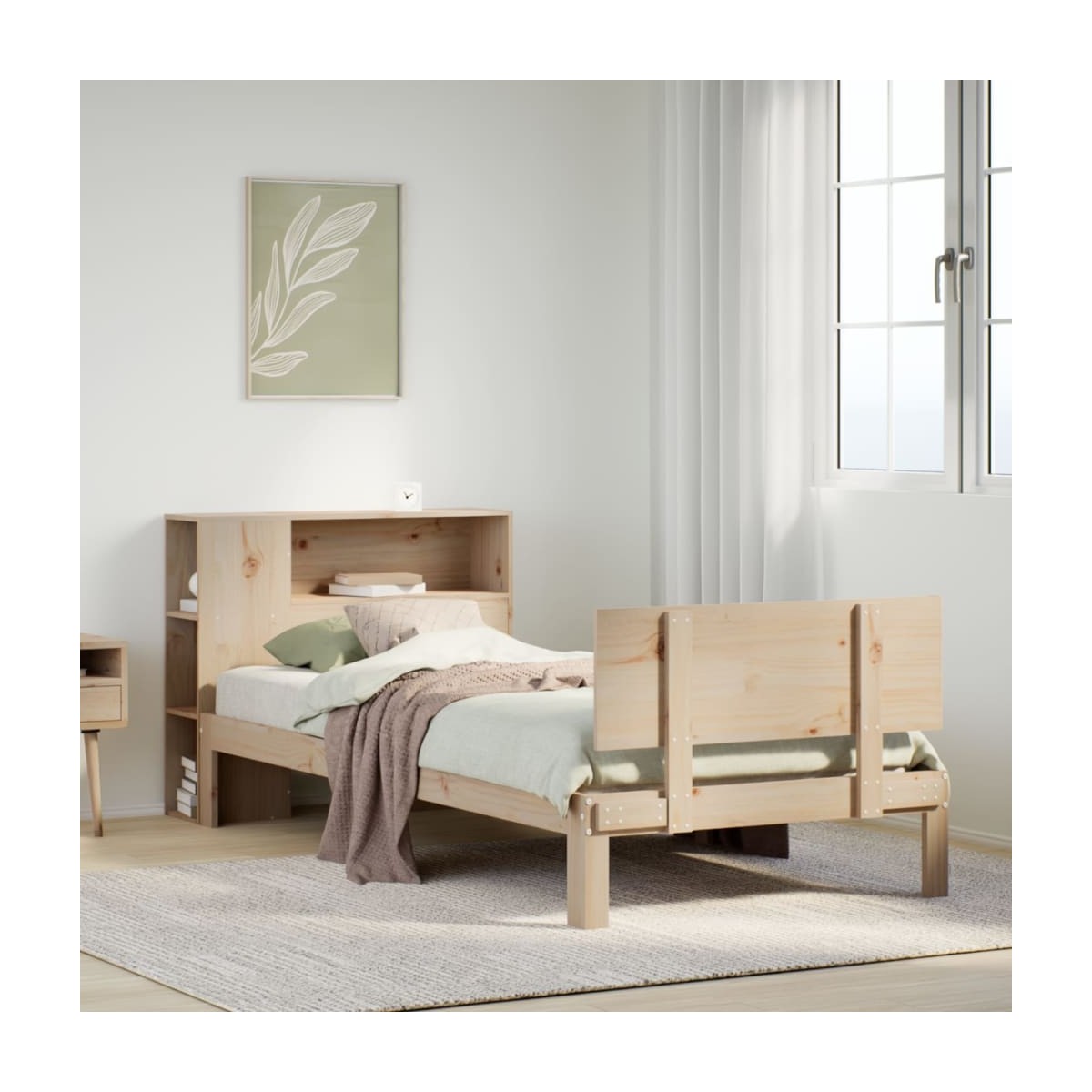 ¡Consigue una mejor noche de sueño reparador con esta cama con estantería! Es un aporte acogedor para cualquier dormitorio. Estructura estable y duradera: La madera de pino maciza es conocida por su resistencia y durabilidad. Sus vetas rectas y sus característicos nudos contribuyen a su encanto rústico. Somier de láminas para un soporte óptimo: La estructura de cama está equipada con un somier de láminas para el apoyo y la transpirabilidad del colchón. Amplio espacio de almacenamiento: El cabecero de estantería ofrece un amplio espacio de almacenamiento para mantener libros, artículos decorativos o pertenencias personales al alcance de la mano, lo que reduce el desorden en el dormitorio. Práctico pie de cama: El pie de cama no solo contribuye a la estabilidad general del marco de la cama, proporcionando un entorno seguro para dormir, sino que también asegura su colchón en su lugar y evita que las mantas, sábanas y otra ropa de cama se caigan del extremo de la cama, manteniendo una apariencia ordenada. Ahorro de espacio: Este cabecero es una opción de ahorro de espacio que puede sustituir la necesidad de una mesilla de noche, ayudando a maximizar el espacio de tu dormitorio, y haciéndolo ideal para espacios pequeños o limitados. Información útil:El colchón no está incluido con la cama. Disponemos de una variada selección de colchones. Puedes echar un vistazo a nuestra tienda para buscar el colchón correspondiente.