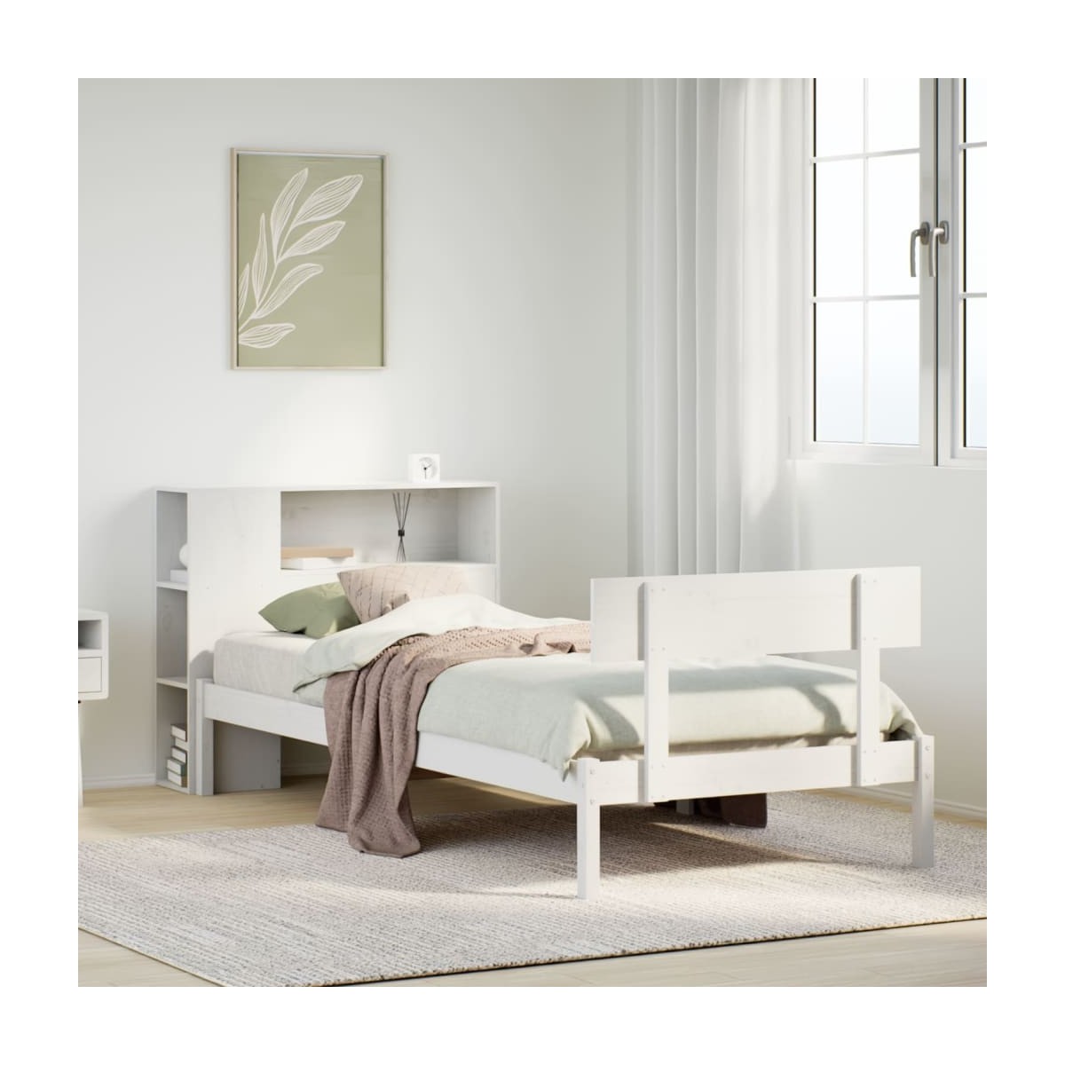 ¡Consigue una mejor noche de sueño reparador con esta cama con estantería! Es un aporte acogedor para cualquier dormitorio. Estructura estable y duradera: La madera de pino maciza es conocida por su resistencia y durabilidad. Sus vetas rectas y sus característicos nudos contribuyen a su encanto rústico.Somier de láminas para un soporte óptimo: La estructura de cama está equipada con un somier de láminas para el apoyo y la transpirabilidad del colchón.Amplio espacio de almacenamiento: El cabecero de estantería ofrece un amplio espacio de almacenamiento para mantener libros, artículos decorativos o pertenencias personales al alcance de la mano, lo que reduce el desorden en el dormitorio.Práctico pie de cama: El pie de cama no solo contribuye a la estabilidad general del marco de la cama, proporcionando un entorno seguro para dormir, sino que también asegura su colchón en su lugar y evita que las mantas, sábanas y otra ropa de cama se caigan del extremo de la cama, manteniendo una apariencia ordenada.Ahorro de espacio: Este cabecero es una opción de ahorro de espacio que puede sustituir la necesidad de una mesilla de noche, ayudando a maximizar el espacio de tu dormitorio, y haciéndolo ideal para espacios pequeños o limitados. Información útil:El colchón no está incluido con la cama. Disponemos de una variada selección de colchones. Puedes echar un vistazo a nuestra tienda para buscar el colchón correspondiente.