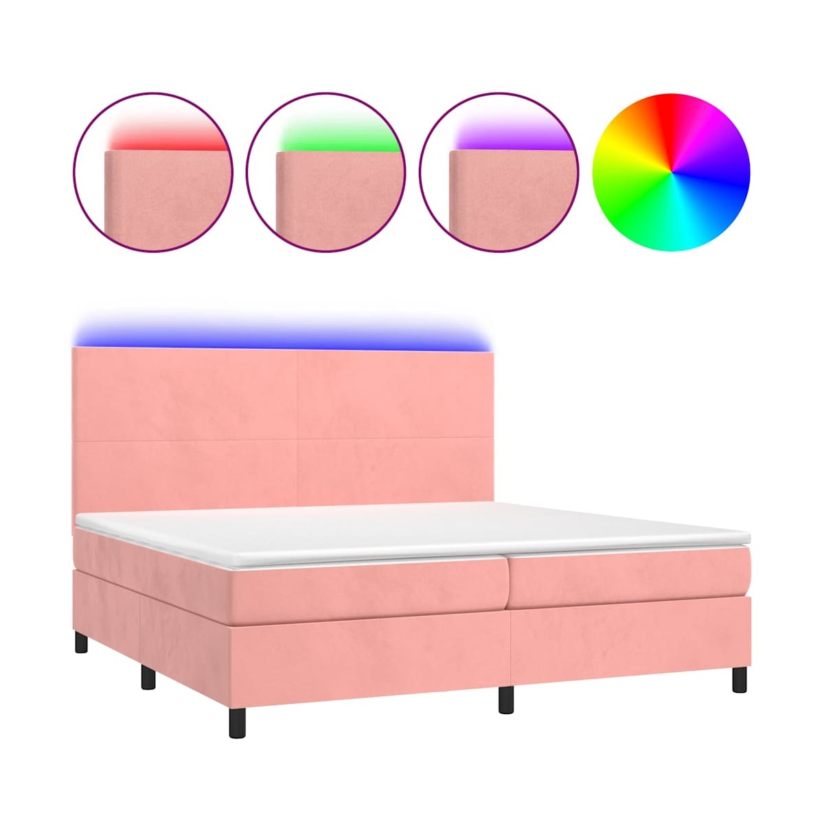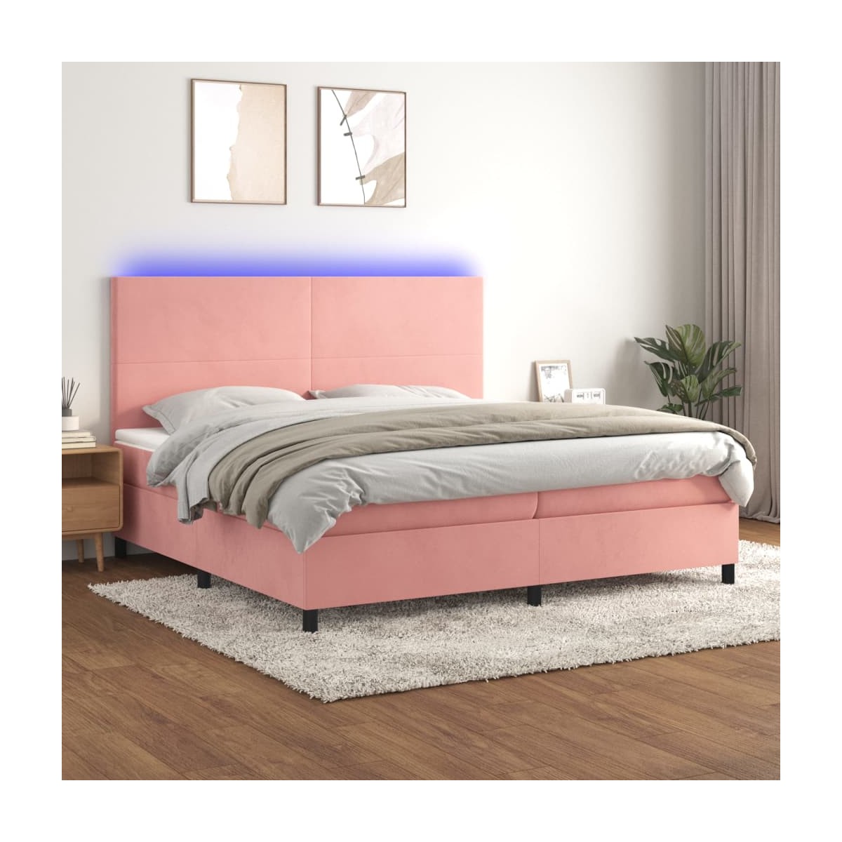 Utiliza esta cama box spring con colchón y LED para disfrutar de un sueño reparador. Es el centro de atención de tu dormitorio. Terciopelo suave: El terciopelo es una tela suave y lujosa, reconocida por su denso pelo de fibras cortadas de forma uniforme que tienen una suave pelusa. La tela de terciopelo posee un característico y suave tacto, lo que hace que sea cómoda al tacto.Cabecero práctico: El cabecero de la cama es ajustable en altura según tus preferencias. El cabecero de la cama te proporciona un excelente apoyo para la espalda mientras estás sentado en la cama para leer o ver la televisión.Tira de LED de colores: Alegra la oscuridad con luces LED de colores.Colchón de muelles ensacados: El muelle ensacado individual incorporado es conocido por su altísima calidad, al tiempo que garantiza un alto nivel de durabilidad y adaptabilidad. Puede absorber eficazmente el ruido y los golpes causados por los lanzamientos y los giros.Protector de colchón respetuoso con la piel: El protector de colchón tiene una funda de tejido resistente y respetuoso con la piel, que lo hace suave y confortable. Nota:Por razones de higiene, el colchón no puede devolverse si se ha quitado o abierto el embalaje.Únicamente puedes cortar por la parte con el símbolo de las tijeras y únicamente la parte con el USB seguirá funcionando como antes.Cada producto viene con un manual de montaje en la caja para facilitar el montaje.El producto tiene un conector USB, pero no se incluye la fuente de alimentación USB de 5 V certificada.