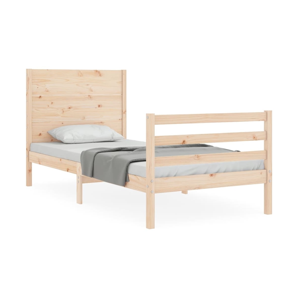 ¡Disfruta de una buena noche de sueño en esta estructura de cama de madera! Es un aporte práctico y decorativo para la casa. Material duradero: La madera maciza de pino es un hermoso material natural. La madera de pino tiene vetas rectas, y los nudos dan al material su distintivo aspecto rústico. Hecha de madera maciza de pino, esta cama es resistente y duradera.Listones de madera contrachapada: Los listones de madera contrachapada ofrecen una buena distribución del peso, lo que garantiza el tan necesario soporte y la transpirabilidad del colchón.Cabecero y estribo de cama útiles: El cabecero y el estribo de la cama de madera mantienen el colchón en su lugar. Además, la cabecera te brinda un excelente soporte para la espalda mientras estás sentado leyendo o mirando la televisión. Información útil: El colchón no está incluido con la cama. Disponemos de una variada selección de colchones. Puedes echar un vistazo a nuestra tienda para buscar el colchón correspondiente.Algunas piezas del cabecero se empaquetan en las cajas de cartón de la estructura de la cama debido a las limitaciones de espacio.
