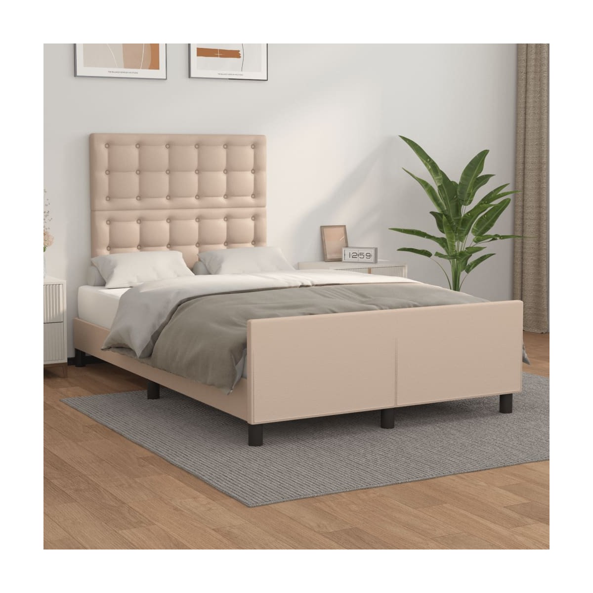 ¡Consigue un sueño más reparador con esta estructura de cama con cabecero! Es un aporte acogedor para cualquier dormitorio. Material duradero: El cuero sintético de primera calidad es un material muy duradero. Es resistente a las manchas, por lo que es fácil de limpiar con un paño húmedo. Además, la superficie lisa da un aspecto lujoso y la belleza del cuero auténtico.Altura regulable: El cabecero de la cama es ajustable en altura según tus preferencias.Patas de apoyo: La cama se apoya en patas robustas, que garantizan su estabilidad, seguridad y firmeza.Listones robustos: Los listones de madera contrachapada proporcionan una buena distribución del peso, lo que garantiza que el colchón se mantenga en tu sitio con cada giro y vuelta del cuerpo mientras duermes.Excelente apoyo: El cabecero de la cama te proporciona un excelente apoyo para la espalda mientras estás sentado en la cama para leer o ver la televisión. Información útil:La entrega incluye solo una estructura de cama. El colchón no está incluido. Puedes echar un vistazo en nuestra tienda para buscar colchones a juego.
