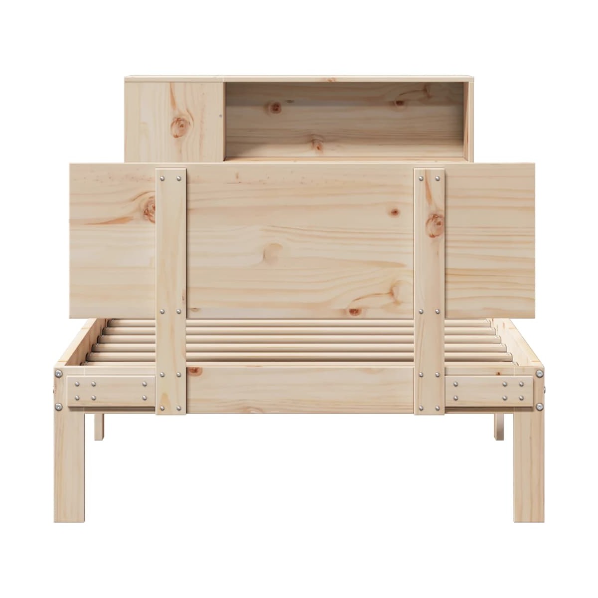 ¡Consigue una mejor noche de sueño reparador con esta cama con estantería! Es un aporte acogedor para cualquier dormitorio. Estructura estable y duradera: La madera de pino maciza es conocida por su resistencia y durabilidad. Sus vetas rectas y sus característicos nudos contribuyen a su encanto rústico. Somier de láminas para un soporte óptimo: La estructura de cama está equipada con un somier de láminas para el apoyo y la transpirabilidad del colchón. Amplio espacio de almacenamiento: El cabecero de estantería ofrece un amplio espacio de almacenamiento para mantener libros, artículos decorativos o pertenencias personales al alcance de la mano, lo que reduce el desorden en el dormitorio. Práctico pie de cama: El pie de cama no solo contribuye a la estabilidad general del marco de la cama, proporcionando un entorno seguro para dormir, sino que también asegura su colchón en su lugar y evita que las mantas, sábanas y otra ropa de cama se caigan del extremo de la cama, manteniendo una apariencia ordenada. Ahorro de espacio: Este cabecero es una opción de ahorro de espacio que puede sustituir la necesidad de una mesilla de noche, ayudando a maximizar el espacio de tu dormitorio, y haciéndolo ideal para espacios pequeños o limitados. Información útil:El colchón no está incluido con la cama. Disponemos de una variada selección de colchones. Puedes echar un vistazo a nuestra tienda para buscar el colchón correspondiente.