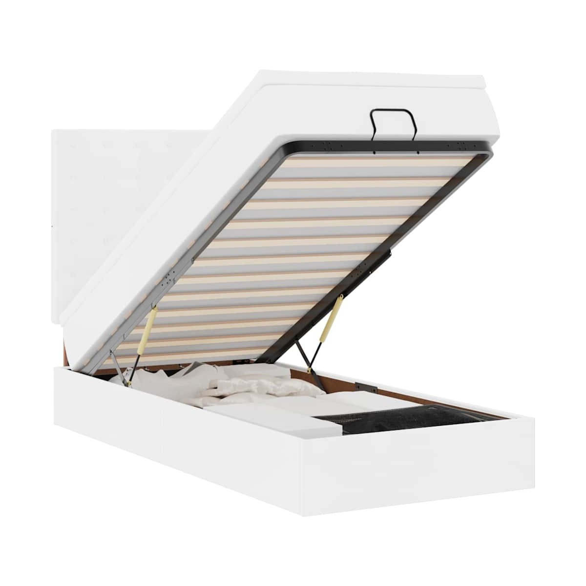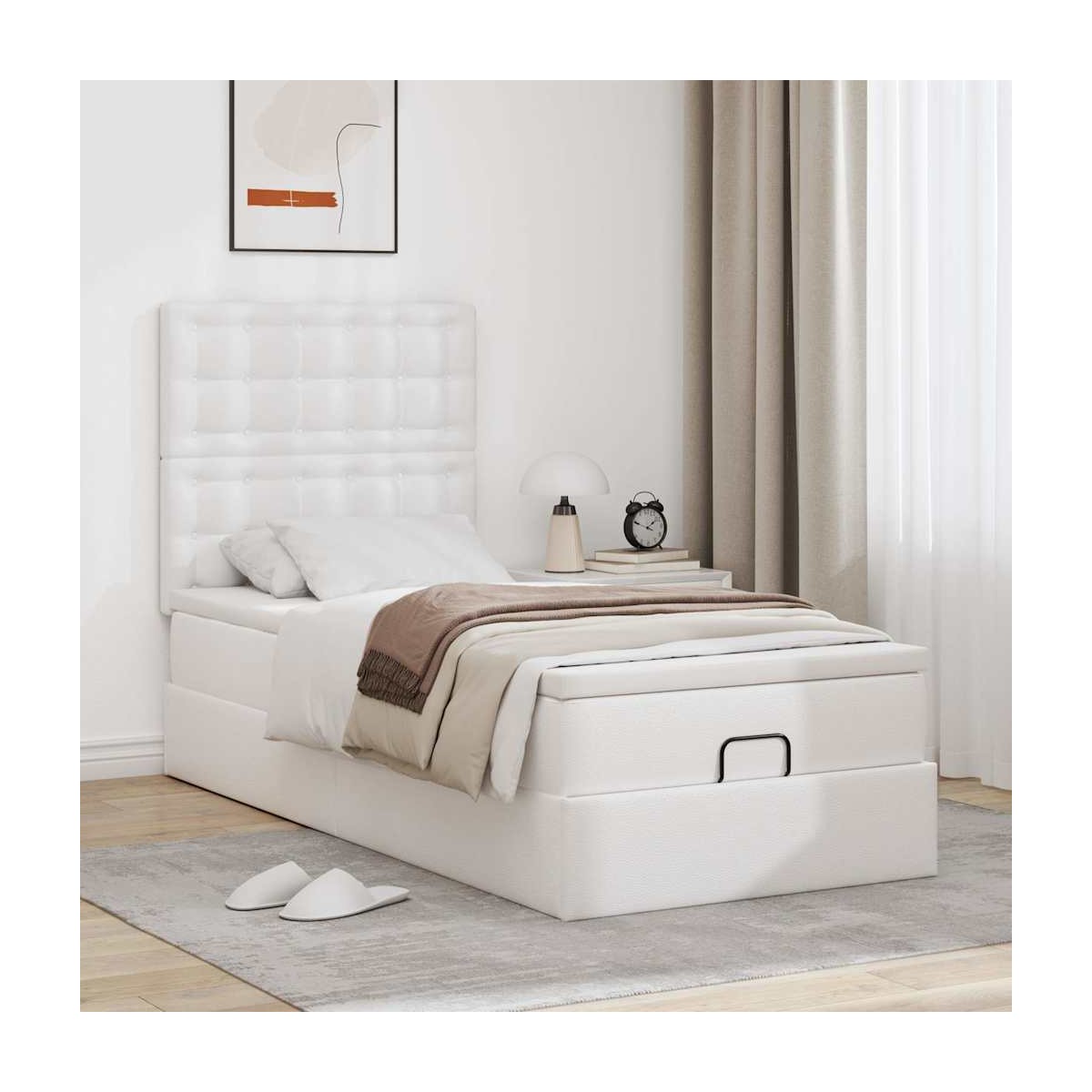 ¡Utilice esta cama otomana con colchón para disfrutar de una noche de sueño reparador! Le ofrece una solución de almacenamiento y una experiencia de sueño cómoda. Larga duración y fácil mantenimiento: El cuero sintético es un material muy duradero y resistente a las manchas, por lo que es fácil de limpiar con un paño húmedo. Su superficie lisa le da un aspecto elegante que recuerda al cuero auténtico.Colchón de muelles ensacados: Este colchón de muelles ensacados cuenta con muelles ensacados individuales que funcionan de forma independiente para proporcionar un apoyo personalizado reaccionando únicamente a la presión de cada zona. Este diseño evita que se enrolle y reduce la transferencia de movimiento en comparación con los colchones tradicionales de bobina abierta. Cada muelle ensacado sostiene el cuerpo individualmente.amplio espacio de almacenamiento debajo de la cama: gracias al mecanismo de elevación hidráulico, el marco de la cama ofrece un amplio espacio de almacenamiento debajo de la cama, maximizando el espacio sin ocupar área adicional en el piso.Cubrecolchón cómodo: Este cubrecolchón mejora el soporte y la comodidad con su superficie suave y transpirable al tiempo que prolonga la vida útil de su colchón. Su funda extraíble permite un fácil lavado, lo que facilita el mantenimiento. Información útil:Por razones de higiene, el colchón no puede devolverse si se ha quitado o abierto el embalaje.