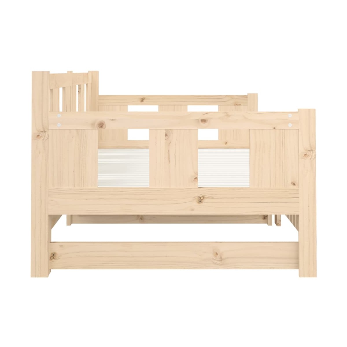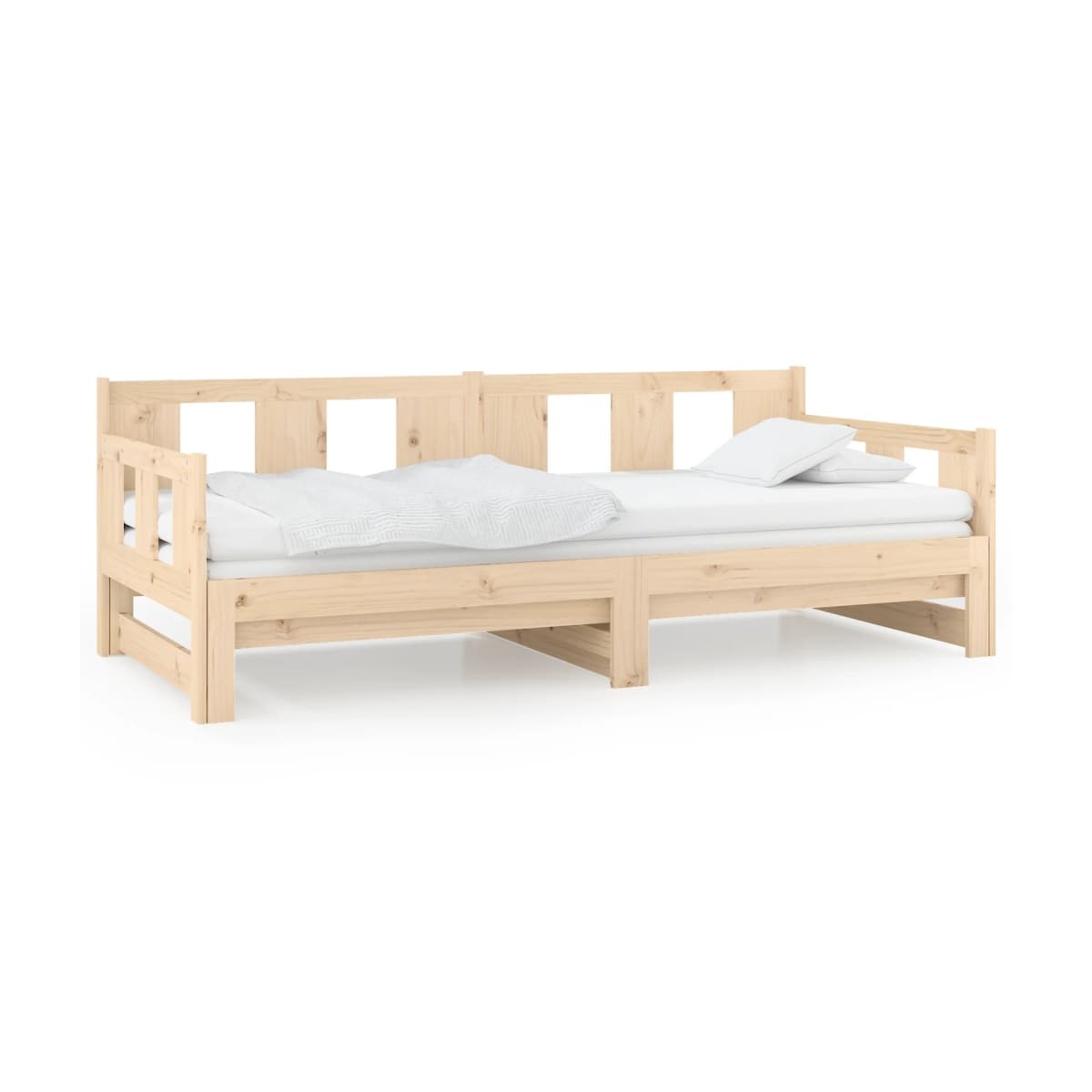 Además de servir como sofá durante el día, este sofá cama multifuncional también sirve como cama por la noche, lo que la convierte en una excelente opción para los invitados durante la noche. No importa dónde se coloque, ¡este práctico sofá cama seguramente llamará la atención! Madera de pino maciza: La madera de pino maciza es un bonito material natural. La madera de pino tiene vetas rectas, y los nudos dan al material su distintivo aspecto rústico.Diseño convertible: Con una cama extraíble, el mueble puede convertirse fácilmente en un sofá durante el día y en una cómoda cama por la noche.Función de ahorro de espacio: El sofá cama de madera maciza maximiza el espacio disponible en el suelo a la vez que proporciona espacio para dormir a dos personas, lo que la convierte en una opción ideal para las personas con espacio limitado en su hogar. Nota:Ten en cuenta que la entrega incluye únicamente una estructura de cama. El colchón no está incluido. Puedes echar un vistazo a nuestra tienda para buscar el correspondiente colchón.