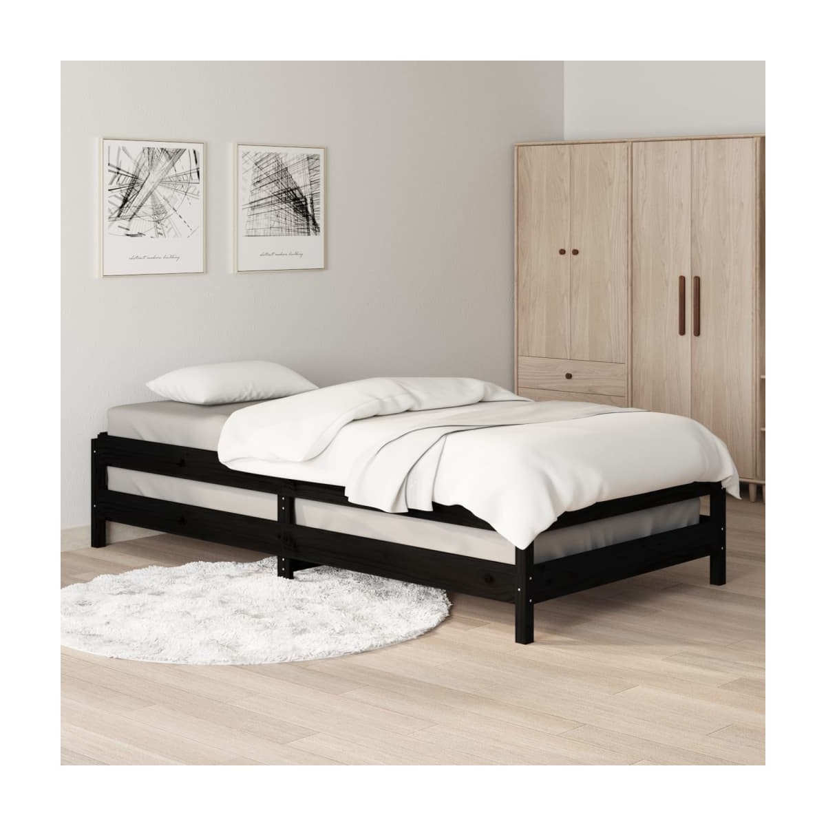 ¿Qué es mejor que disfrutar de una buena noche de sueño al final de un día ajetreado? Esta cama apilada de madera, sencilla pero atemporal, es la opción perfecta para relajarse después de un largo y agotador día. Madera de pino maciza: La madera de pino maciza es un bonito material natural. La madera de pino tiene vetas rectas, y los nudos dan al material su distintivo aspecto rústico.Función apilable: Este marco de cama se puede apilar uno encima del otro en un espacio limitado.Robusto somier: El somier de madera garantiza la robustez y la estabilidad. Los listones proporcionan soporte adicional para tu cama, lo que prolonga la vida útil de tu colchón.Diseño atemporal: Rectangular, sencillo y sin muchos adornos, la cama resulta especialmente apropiada en casas minimalistas. Nota:Ten en cuenta que la entrega incluye únicamente una estructura de cama. El colchón no está incluido. Puedes echar un vistazo a nuestra tienda para buscar el correspondiente colchón.