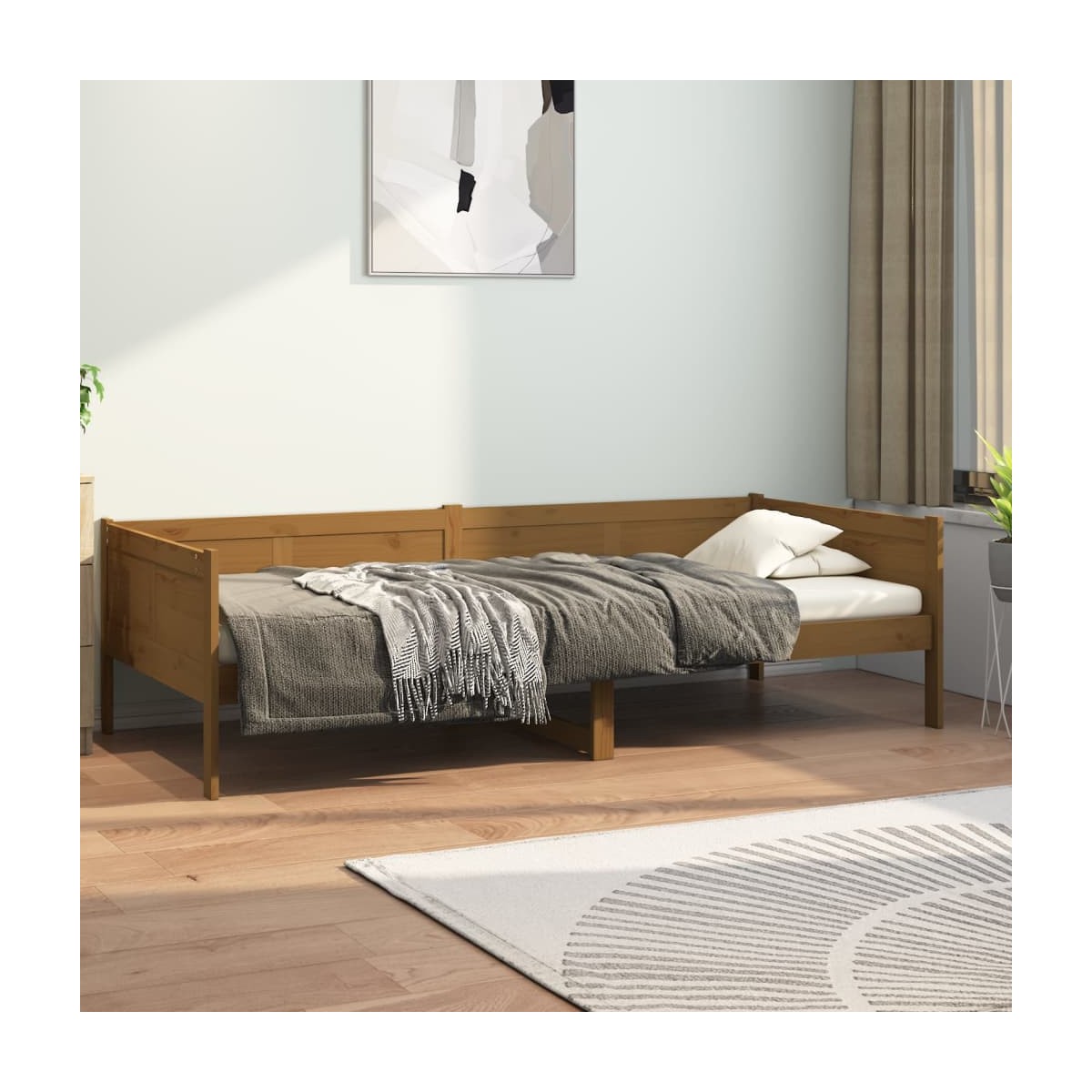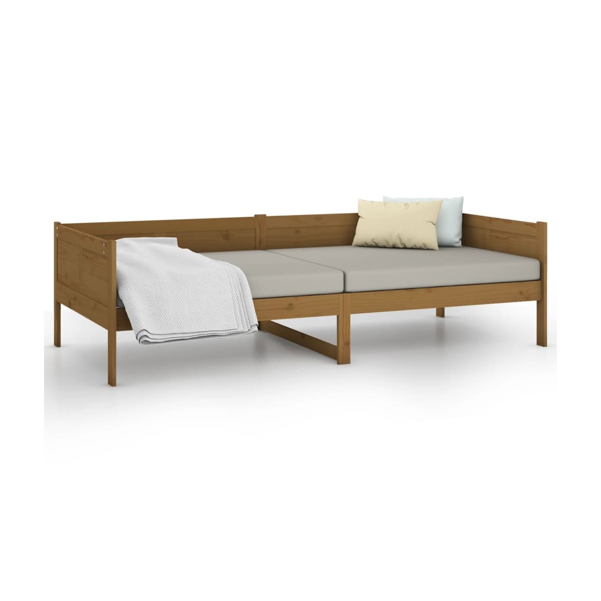 Además de servir como sofá durante el día, este sofá cama multifuncional también sirve como cama por la noche, lo que la convierte en una excelente opción para los invitados durante la noche. No importa dónde se coloque, ¡este práctico sofá cama seguramente llamará la atención! Madera de pino maciza: La madera de pino maciza es un bonito material natural. La madera de pino tiene vetas rectas, y los nudos dan al material su distintivo aspecto rústico.Encanto rústico: El sofá cama da a tu espacio matices rústicos que pueden ser realmente relajantes. El efecto calmante de este sofá cama de madera convierte cualquier dormitorio o habitación de invitados en un lugar relajante, al tiempo que añade un elemento natural a la habitación.Listones robustos: Los listones de esta cama de día de madera maciza proporcionan una buena distribución del peso, asegurando que el colchón se mantenga en su sitio con cada giro de tu cuerpo durante el sueño. Nota:Ten en cuenta que la entrega incluye únicamente una estructura de cama. El colchón no está incluido. Puedes echar un vistazo a nuestra tienda para buscar el correspondiente colchón.
