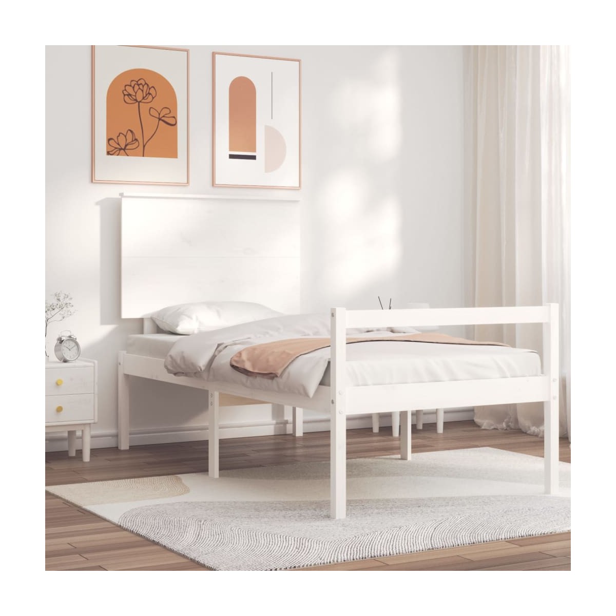 ¡Disfruta de una buena noche de sueño en esta cama para personas mayores! Es un aporte práctico y decorativo para la casa. Madera de pino maciza: La madera de pino maciza es un bonito material natural. Trata la superficie con aceite, cera, laca o un acabado de barniz para conseguir una superficie más fuerte y más fácil de limpiar. La madera de pino tiene vetas rectas, y los nudos dan al material su distintivo aspecto rústico.Adecuada para personas mayores: La estructura de la cama es fácil de subir y bajar para las personas mayores gracias a su altura de asiento de 45 cm.Espacio de almacenaje adicional: La cama tiene espacio debajo para guardar cajas de ropa, juguetes o edredones.Listones robustos: Los listones de madera contrachapada proporcionan una buena distribución del peso, lo que garantiza que el colchón se mantenga en tu sitio con cada giro y vuelta del cuerpo mientras duermes.Cabecero y estribo de cama útiles: El cabecero y el estribo de la cama de madera mantienen el colchón en su lugar. Además, la cabecera te brinda un excelente soporte para la espalda mientras estás sentado leyendo o mirando la televisión. Información útil:El colchón no está incluido con la cama. Ofrecemos una variada selección de colchones. Puedes echar un vistazo a nuestra tienda para buscar el colchón correspondiente.