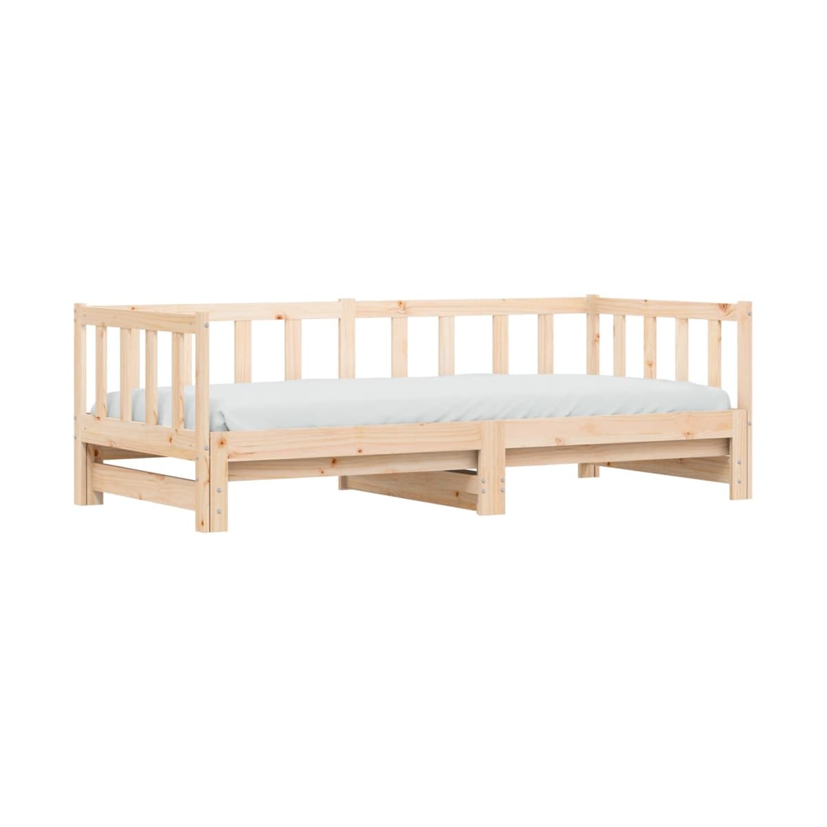 Este versátil sofá cama de madera con nido se puede usar como cama en el dormitorio y también encaja a la perfección como sofá en el salón. Madera maciza de pino: La madera maciza de pino es un bonito material natural. La madera de pino tiene vetas rectas, y los nudos dan al material su distintivo aspecto rústico. Esta cama para invitados está hecha de madera maciza de pino, más estable y duradera.Diseño de listones: El somier de madera proporciona una mejor circulación del aire para mantener el colchón fresco durante más tiempo, además de mejorar la capacidad de carga de la cama y de asegurar su estabilidad.Uso sencillo: Este sofá cama resulta muy práctico de usar y no necesita un canapé ni una base. ¡Tan solo coloca el colchón encima y disfruta de un sueño reparador o descansa sentado!Sofá cama extraíble: Este sofá cama de madera se puede utilizar como sofá durante el día o como cama por la noche. Es una solución rápida para alojar invitados por la noche sin ocupar mucho espacio. Información útil:El colchón no está incluido con la cama. Ofrecemos una variada selección de colchones. Puedes echar un vistazo a nuestra tienda para buscar el correspondiente colchón.