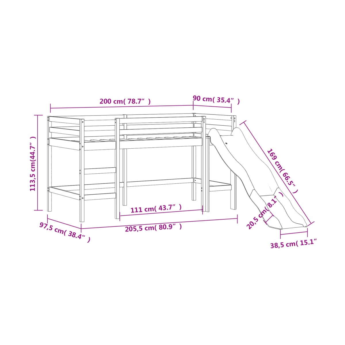 Esta cama alta para niños está fabricada en madera de pino maciza y diseñada para entretener además de para optimizar el espacio. Construcción estable de madera: Esta cama alta está hecha de madera de pino maciza para mayor estabilidad y durabilidad. La madera de pino tiene una veta recta, y los nudos dan a este material su característico aspecto rústico. Aprovechamiento total del espacio: Esta cama alta individual está elevada 87 cm sobre el suelo, lo que proporciona un amplio espacio debajo para almacenamiento u otras actividades. Esta zona se puede utilizar para apilar cajas de almacenaje, guardar juguetes grandes o incluso colocar un sofá infantil para leer. Además, tu hijo puede utilizar el espacio bajo el somier de madera como base secreta y disfrutar de juegos imaginativos. Barandillas de seguridad: La cama intermedia para niños cuenta con barandillas de seguridad en los 4 lados, para que tu hijo pueda dormir sin preocuparse de caerse. Práctica escalera y tobogán: Esta cama nido infantil tiene un divertido tobogán que convierte la habitación en un parque dentro de casa. La combinación de una escalera para trepar y un tobogán hace que la hora de dormir resulte más animada y emocionante para los niños. Información útil:El colchón no está incluido con la cama. Disponemos de una variada selección de colchones. Puedes echar un vistazo a nuestra tienda para buscar el colchón correspondiente. Advertencia:Para evitar que vuelque, este producto debe usarse con el dispositivo de fijación a la pared incluido.