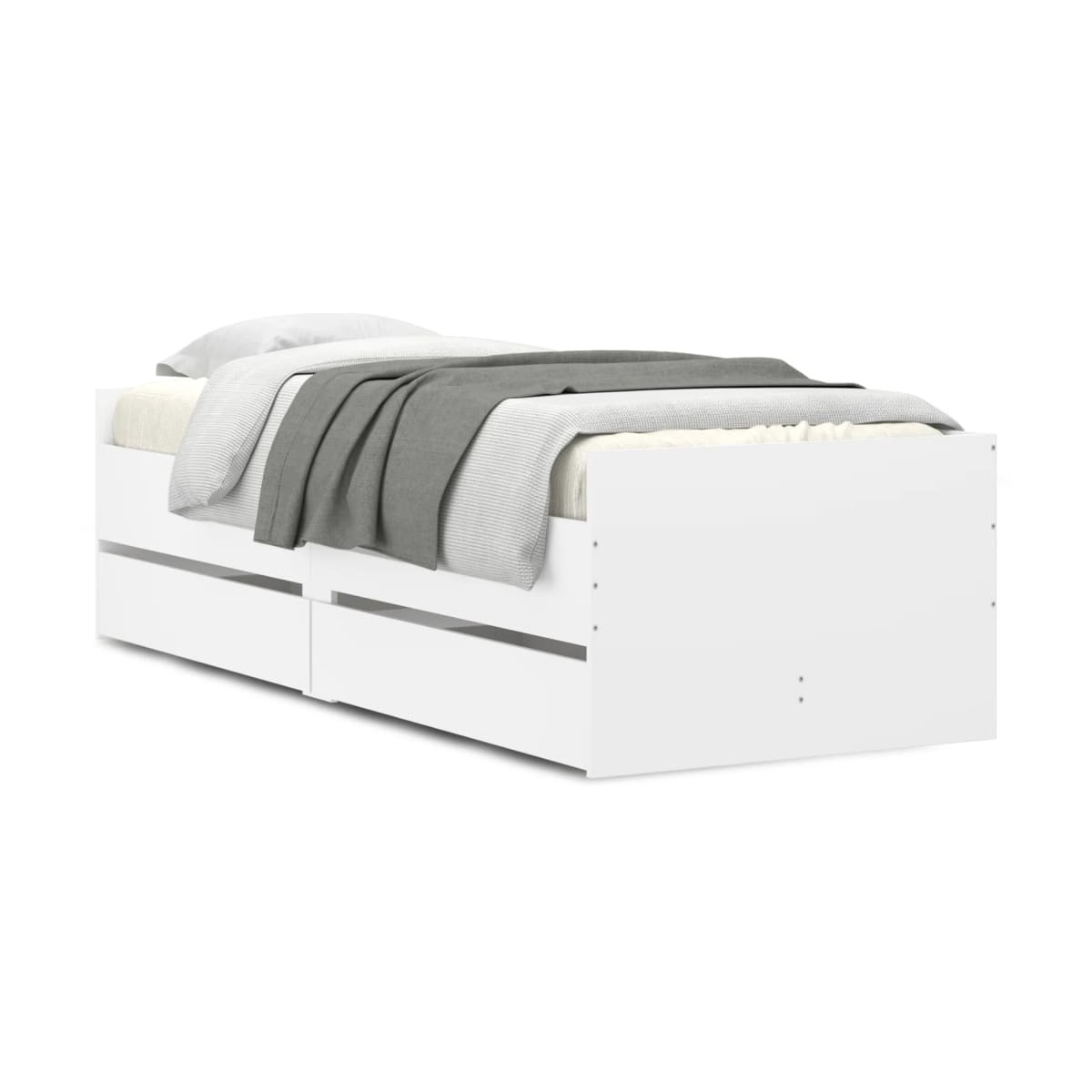 ¡Añade un toque moderno a tu dormitorio con esta estructura de cama con cajones! Es un aporte práctico y decorativo para tu hogar. Material duradero: La estructura de la cama está hecha de madera de ingeniería. La madera de ingeniería tiene una calidad excepcional, con una superficie lisa y también con fuerza, estabilidad y resistencia a la humedad.Listones robustos: Los listones de madera contrachapada proporcionan una buena distribución del peso, lo que garantiza que el colchón se mantenga en tu sitio con cada giro y vuelta del cuerpo mientras duermes.Función de almacenaje: Los cajones de cama incluidos proporcionan amplio espacio de almacenamiento para guardar cosas básicas, y mantienen la habitación limpia y ordenada. Información útil:El colchón no está incluido con la cama. Disponemos de una variada selección de colchones. Puedes echar un vistazo a nuestra tienda para buscar el colchón correspondiente.