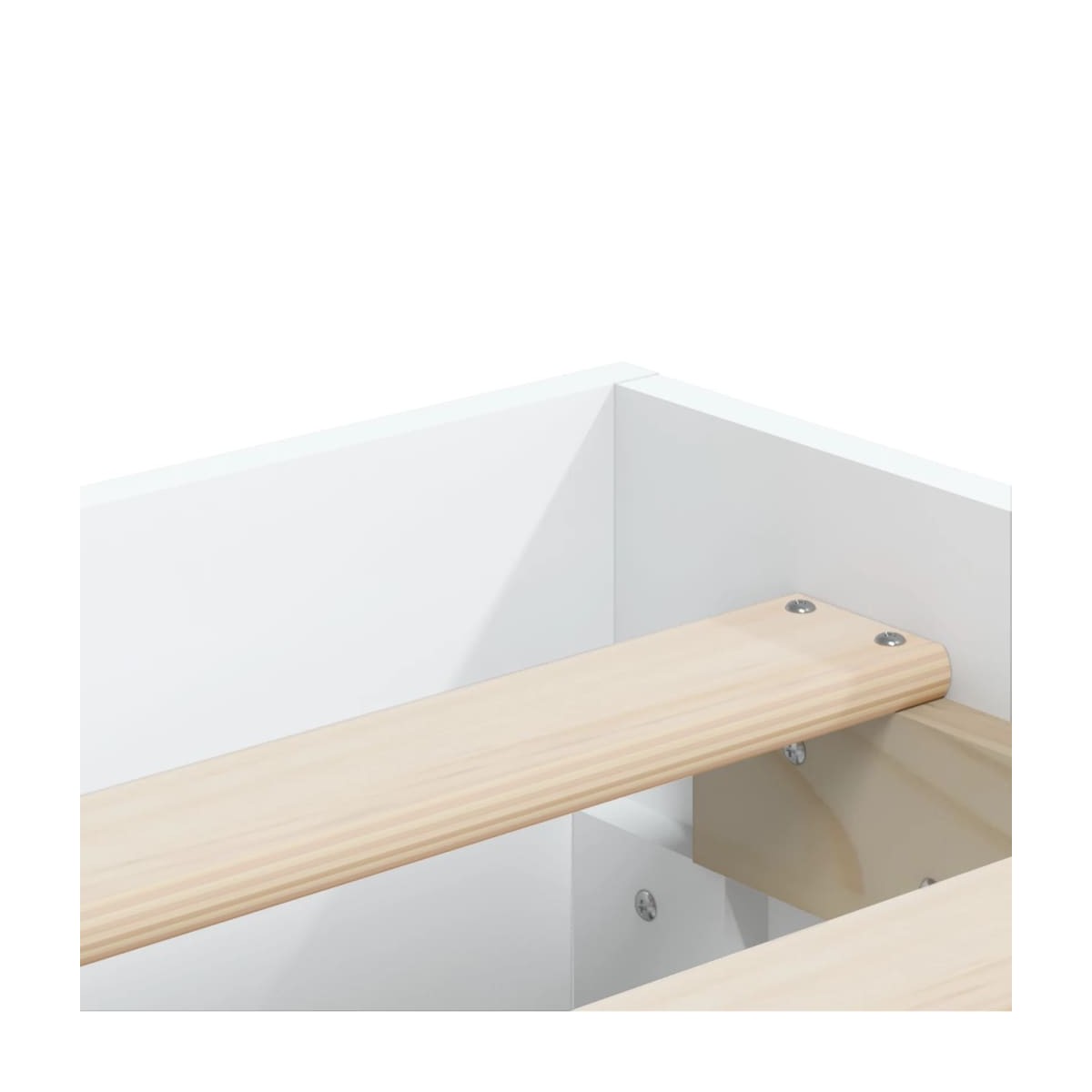 ¡Añade un toque moderno a tu dormitorio con esta estructura de cama con cajones! Es un aporte práctico y decorativo para tu hogar. Material duradero: La estructura de la cama está hecha de madera de ingeniería. La madera de ingeniería tiene una calidad excepcional, con una superficie lisa y también con fuerza, estabilidad y resistencia a la humedad.Listones robustos: Los listones de madera contrachapada proporcionan una buena distribución del peso, lo que garantiza que el colchón se mantenga en tu sitio con cada giro y vuelta del cuerpo mientras duermes.Función de almacenaje: Los cajones de cama incluidos proporcionan amplio espacio de almacenamiento para guardar cosas básicas, y mantienen la habitación limpia y ordenada. Información útil:El colchón no está incluido con la cama. Disponemos de una variada selección de colchones. Puedes echar un vistazo a nuestra tienda para buscar el colchón correspondiente.