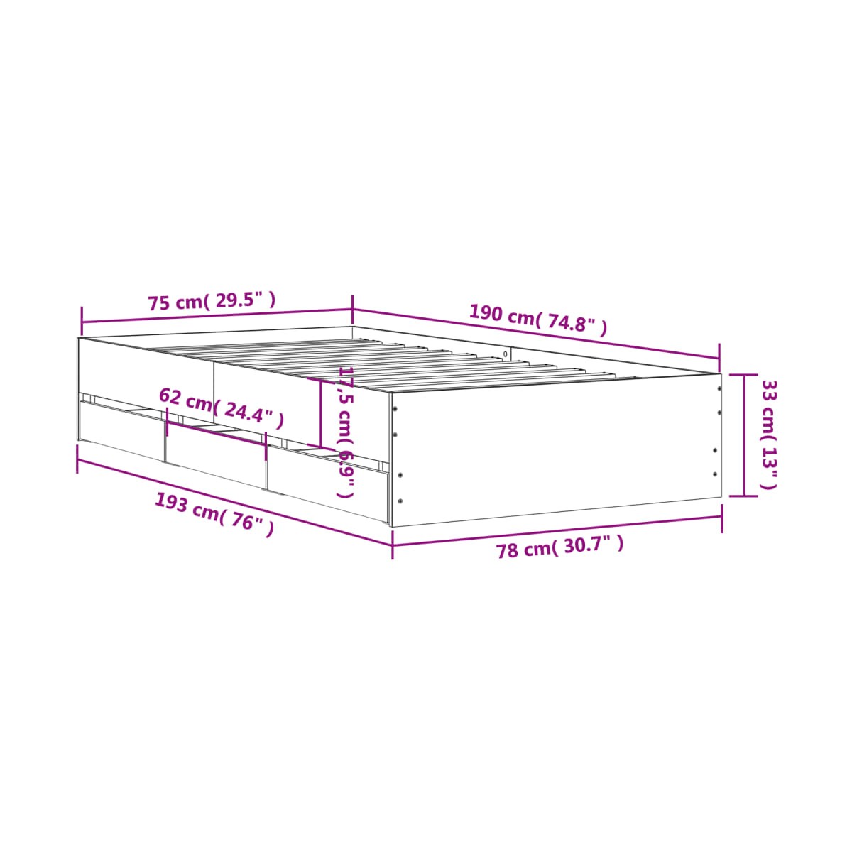 ¡Añade un toque moderno a tu dormitorio con esta estructura de cama con cajones! Es un aporte práctico y decorativo para tu hogar. Material duradero: La estructura de la cama está hecha de madera de ingeniería. La madera de ingeniería tiene una calidad excepcional, con una superficie lisa y también con fuerza, estabilidad y resistencia a la humedad.Listones robustos: Los listones de madera contrachapada proporcionan una buena distribución del peso, lo que garantiza que el colchón se mantenga en tu sitio con cada giro y vuelta del cuerpo mientras duermes.Función de almacenaje: Los cajones de cama incluidos proporcionan amplio espacio de almacenamiento para guardar cosas básicas, y mantienen la habitación limpia y ordenada. Información útil:El colchón no está incluido con la cama. Disponemos de una variada selección de colchones. Puedes echar un vistazo a nuestra tienda para buscar el colchón correspondiente.