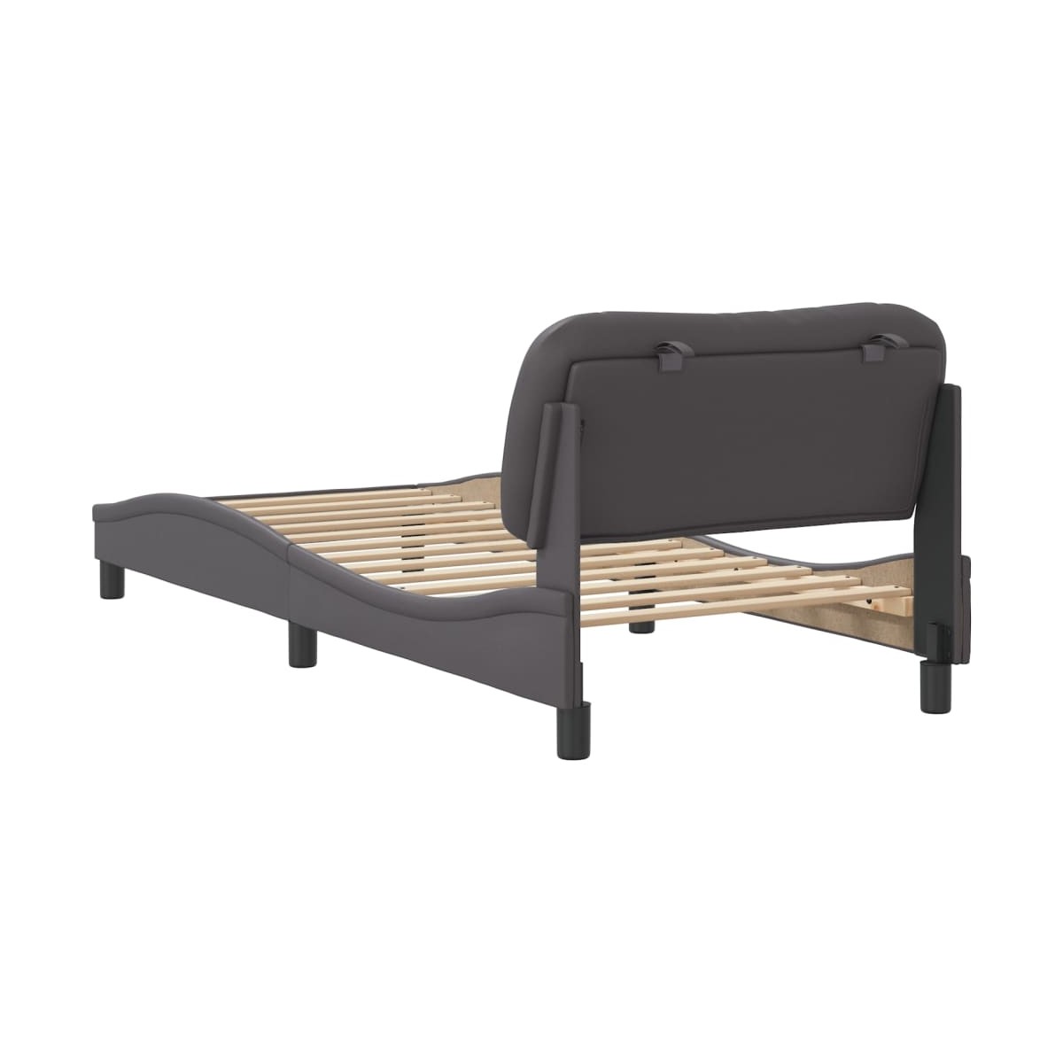 ¡Consigue un sueño más reparador con esta estructura de cama con cabecero! Es un aporte acogedor para cualquier dormitorio. Material duradero: El cuero sintético de primera calidad es un material muy duradero. Es resistente a las manchas, por lo que es fácil de limpiar con un paño húmedo. Además, la superficie lisa da un aspecto lujoso y la belleza del cuero auténtico.Listones robustos: Los listones de madera contrachapada proporcionan una buena distribución del peso, lo que garantiza que el colchón se mantenga en tu sitio con cada giro y vuelta del cuerpo mientras duermes.Excelente soporte: El cabecero acolchado está relleno de fibra PP para una comodidad ultrasuave y óptima, lo que te brinda un excelente soporte para la espalda mientras estás sentado en la cama para leer o ver la televisión.Diseño lateral ondulado: El look ondulado de la estructura de la cama es elegante y sofisticado, agregando un toque moderno y elegante a tu decoración, convirtiéndolo en el foco de atención de tu dormitorio. Información útil:El colchón no está incluido con la cama. Disponemos de una variada selección de colchones. Puedes echar un vistazo a nuestra tienda para buscar el colchón correspondiente.