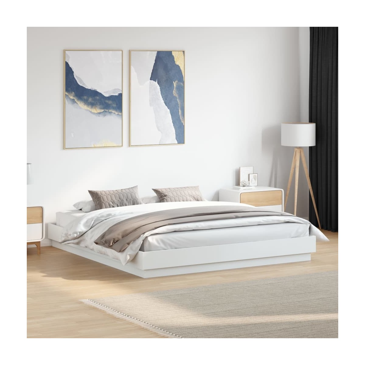 ¡Consigue tener un sueño reparador con esta estructura de cama con luces LED! Es un aporte acogedor para cualquier dormitorio. Material duradero: La madera de ingeniería tiene una calidad excepcional, con una superficie lisa y también cuenta con fuerza, estabilidad y resistencia a la humedad.Luces LED RGB: La estructura de cama está equipada con luces LED RGB. Con varios menús personalizables, puedes cambiar fácilmente el color de las luces e incluso configurarlas para que se ajusten automáticamente. Estas luces LED no sólo realzan el aspecto moderno de la base de la cama, sino que también aumentan su atractivo.Listones robustos: Los listones de madera contrachapada proporcionan una buena distribución del peso, lo que garantiza que el colchón se mantenga en tu sitio con cada giro y vuelta del cuerpo mientras duermes. Información útil:El colchón no está incluido con la cama. Disponemos de una variada selección de colchones. Puedes echar un vistazo a nuestra tienda para buscar el colchón correspondiente.El producto tiene un conector USB que necesita una fuente de alimentación USB certificada de 5 V (no incluida).