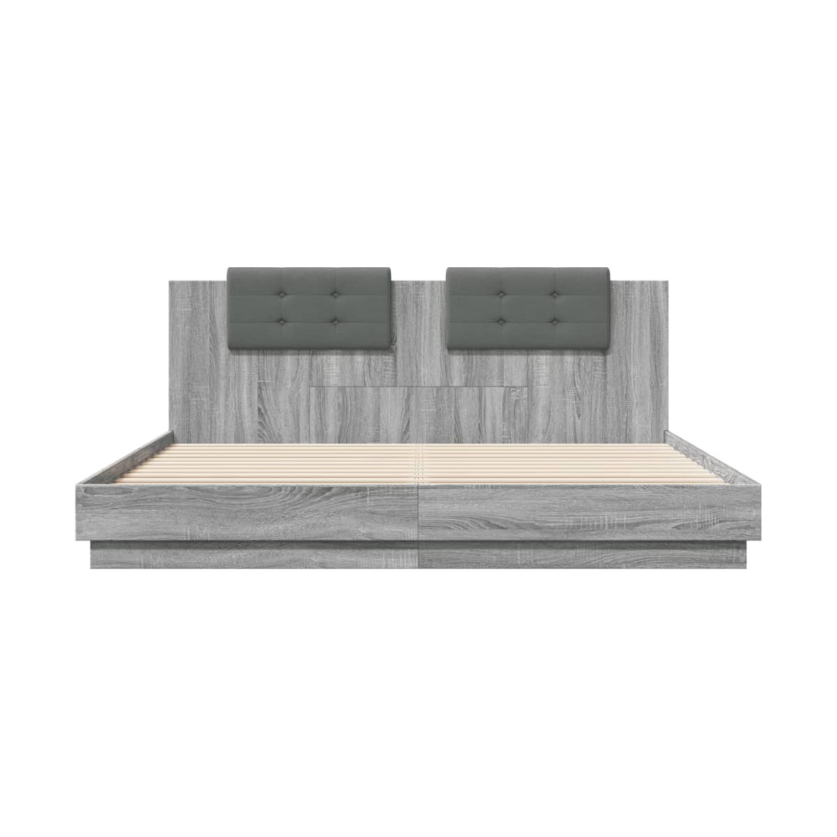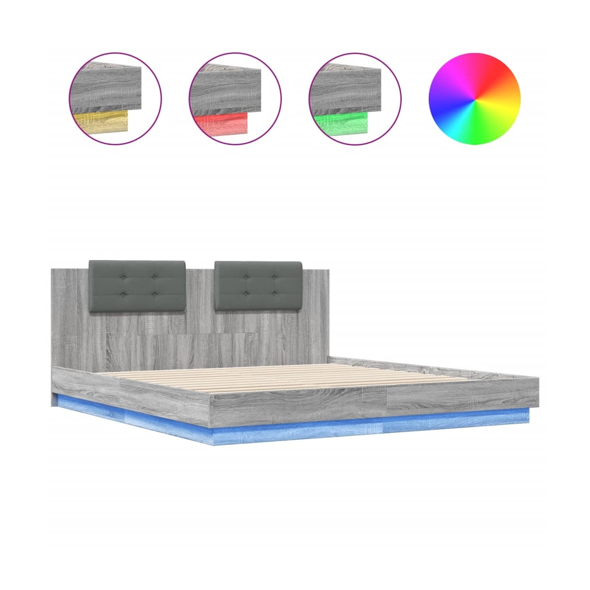 ¡Consigue tener un sueño más reparador con esta estructura de cama con cabecero y luces LED! Es un aporte acogedor para cualquier dormitorio. Material duradero: La madera de ingeniería tiene una calidad excepcional, con una superficie lisa y también cuenta con fuerza, estabilidad y resistencia a la humedad.Luces LED RGB: La estructura de cama está equipada con luces LED RGB. Con varios menús personalizables, puedes cambiar fácilmente el color de las luces e incluso configurarlas para que se ajusten automáticamente. Estas luces LED no sólo realzan el aspecto moderno de la base de la cama, sino que también aumentan su atractivo.Excelente soporte: El cabecero de la cama brinda un excelente soporte para la espalda mientras estás sentado en la cama para leer o ver la televisión.Listones robustos: Los listones de madera contrachapada proporcionan una buena distribución del peso, lo que garantiza que el colchón se mantenga en tu sitio con cada giro y vuelta del cuerpo mientras duermes. Información útil:El colchón no está incluido con la cama. Disponemos de una variada selección de colchones. Puedes echar un vistazo a nuestra tienda para buscar el colchón correspondiente.El producto tiene un conector USB que necesita una fuente de alimentación USB certificada de 5 V (no incluida).
