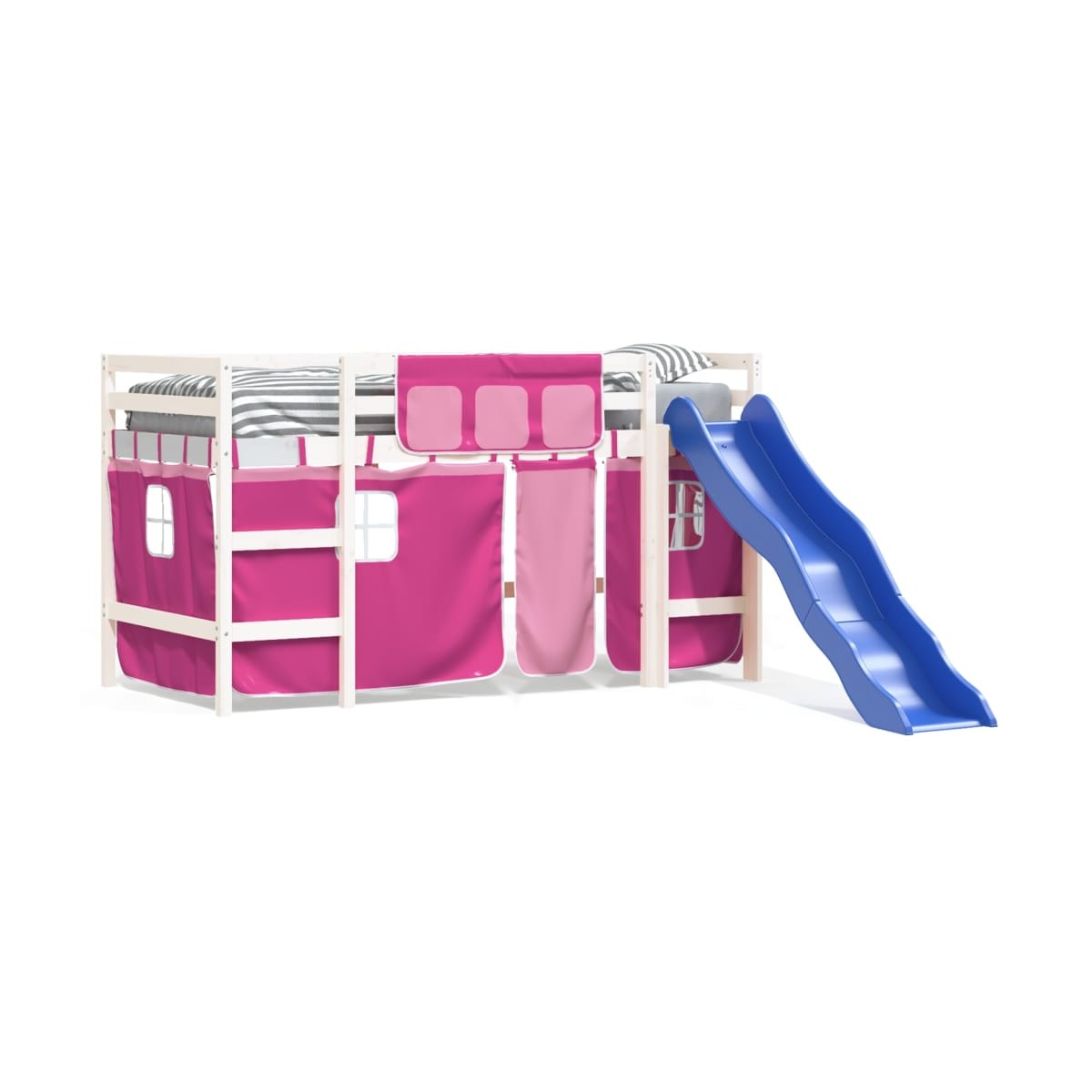 Esta cama alta para niños está hecha de madera maciza de pino y diseñada para entretener además de optimizar el espacio. Construcción estable de madera: Esta cama alta está hecha de madera de pino maciza para mayor estabilidad y durabilidad. La madera de pino tiene una veta recta, y los nudos dan a este material su característico aspecto rústico. Aprovechamiento total del espacio: Esta cama alta individual está elevada 87 cm sobre el suelo, lo que proporciona un amplio espacio debajo para almacenamiento u otras actividades. Esta zona se puede utilizar para apilar cajas de almacenaje, guardar juguetes grandes o incluso colocar un sofá infantil para leer.Mucha diversión: Puedes combinar las cortinas con la estructura de la cama alta para crear la base secreta para tu hijo. ¡La hora de dormir será un juego y la cama será el centro de atención del dormitorio!Barandillas de seguridad: La cama intermedia para niños cuenta con barandillas de seguridad en los 4 lados, para que tu hijo pueda dormir sin preocuparse de caerse. Práctica escalera y tobogán: Esta cama nido infantil tiene un divertido tobogán que convierte la habitación en un parque dentro de casa. La combinación de una escalera para trepar y un tobogán hace que la hora de dormir resulte más animada y emocionante para los niños. Información útil:El colchón no está incluido con la cama. Disponemos de una variada selección de colchones. Puedes echar un vistazo a nuestra tienda para buscar el colchón correspondiente. Advertencia:Para evitar que vuelque, este producto debe usarse con el dispositivo de fijación a la pared incluido.