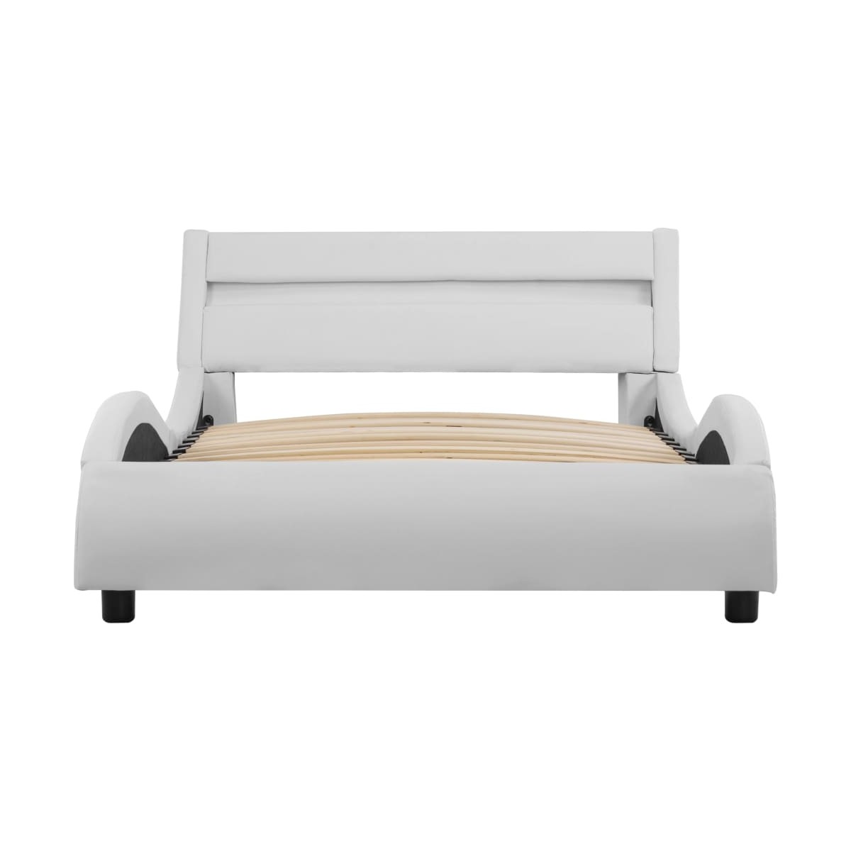 - Material: Tapicería de cuero sintético, listones de madera contrachapada y marco de acero y MDF