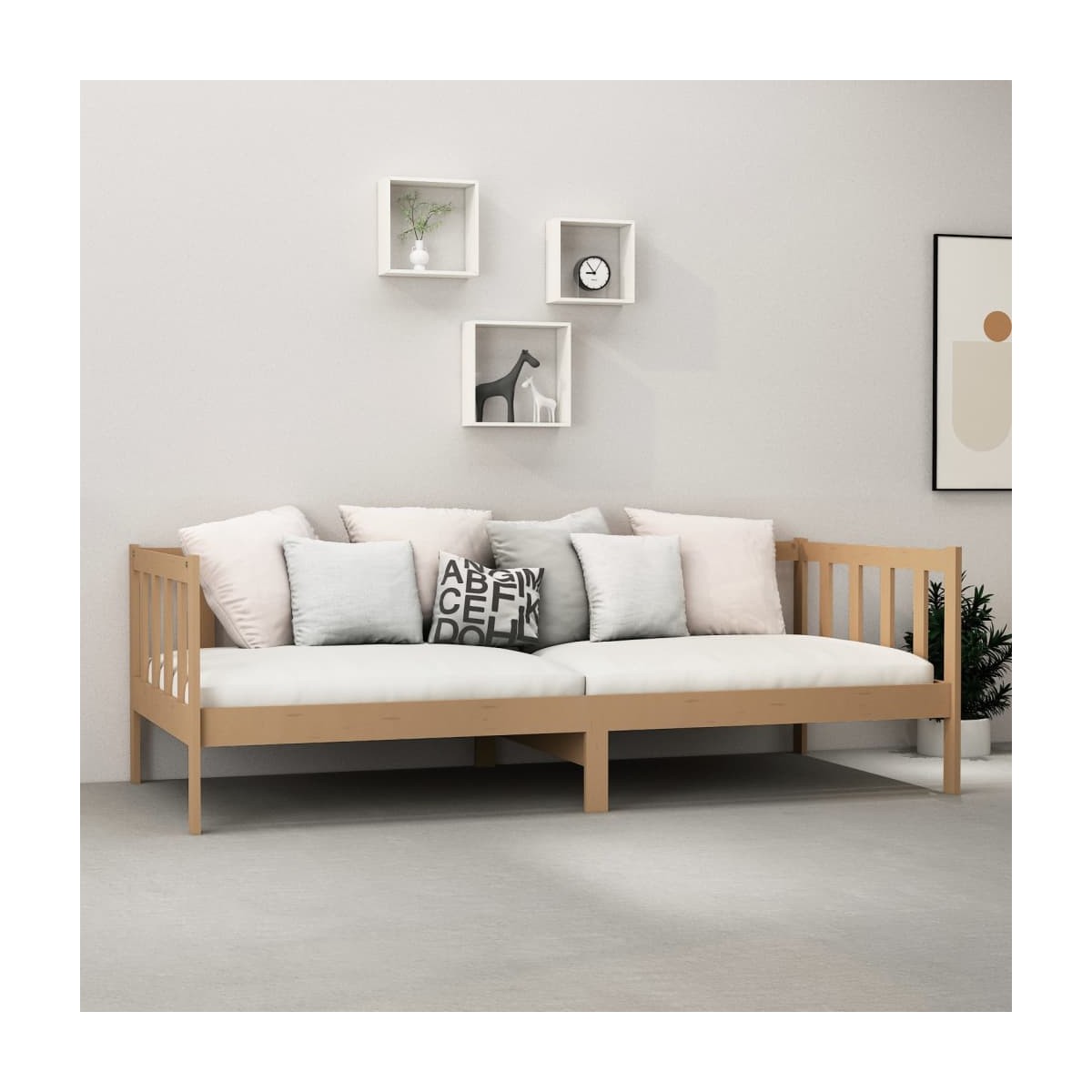 Este sofá cama de madera es una solución perfecta para alojar a los huéspedes durante la noche, al tiempo que ofrece un cómodo espacio para sentarse durante el día. El sofá cama está hecho de madera de pino maciza, por lo que es resistente y estable. Los robustos listones también ofrecen el soporte y la comodidad necesarias. ¡Siempre puedes disfrutar de una buena noche de sueño en la cama con un colchón extrasuave! Ofrece una experiencia de sueño tranquila y también protege la salud de la columna vertebral. Recomendamos ventilar el colchón regularmente para prolongar su vida útil. Esta cama de día de madera multifuncional puede utilizarse como sofá durante el día, o como cama por la noche para ofrecer una solución rápida para alojar a los invitados que pasen la noche. ¡Este práctico sofá cama es definitivamente un atractivo dondequiera que se coloque! Nota importante: No puedes devolver el colchón por razones de higiene si la funda del colchón ha sido abierta o retirada.