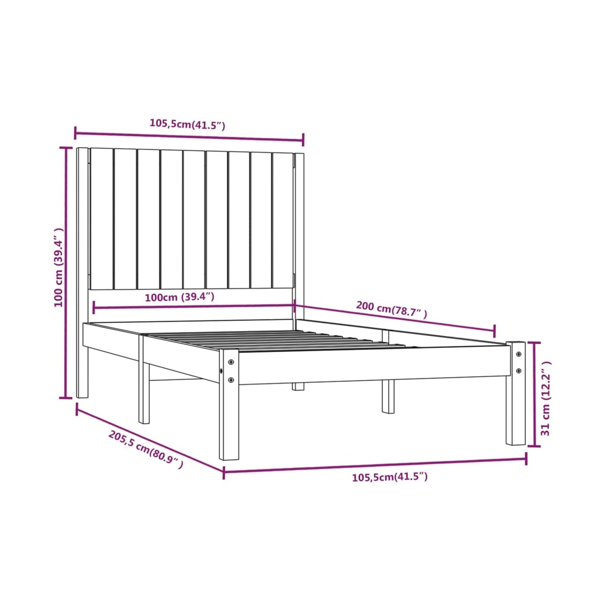 ¡Lleva la ruta moderna a tu dormitorio con esta estructura de cama de madera! Es un aporte práctico y decorativo para tu hogar. Material de primera calidad: La madera maciza de pino es un bonito material natural. La madera de pino tiene vetas rectas, y los nudos dan al material su distintivo aspecto rústico.Estructura robusta y estable: Las estructuras de madera garantizan su solidez y estabilidad.Cabecero cómodo: El clásico cabecero te permite descansar cómodamente mientras lees o ves una película.Diseño llamativo: El cabecero es decorativo y práctico. Añade un estilo y comodidad únicos. Nota:La entrega incluye solo una estructura de cama. El colchón no está incluido. Puedes echar un vistazo en nuestra tienda para buscar colchones a juego.Esta estructura de cama es adecuada para un colchón de 100 x 200 cm.