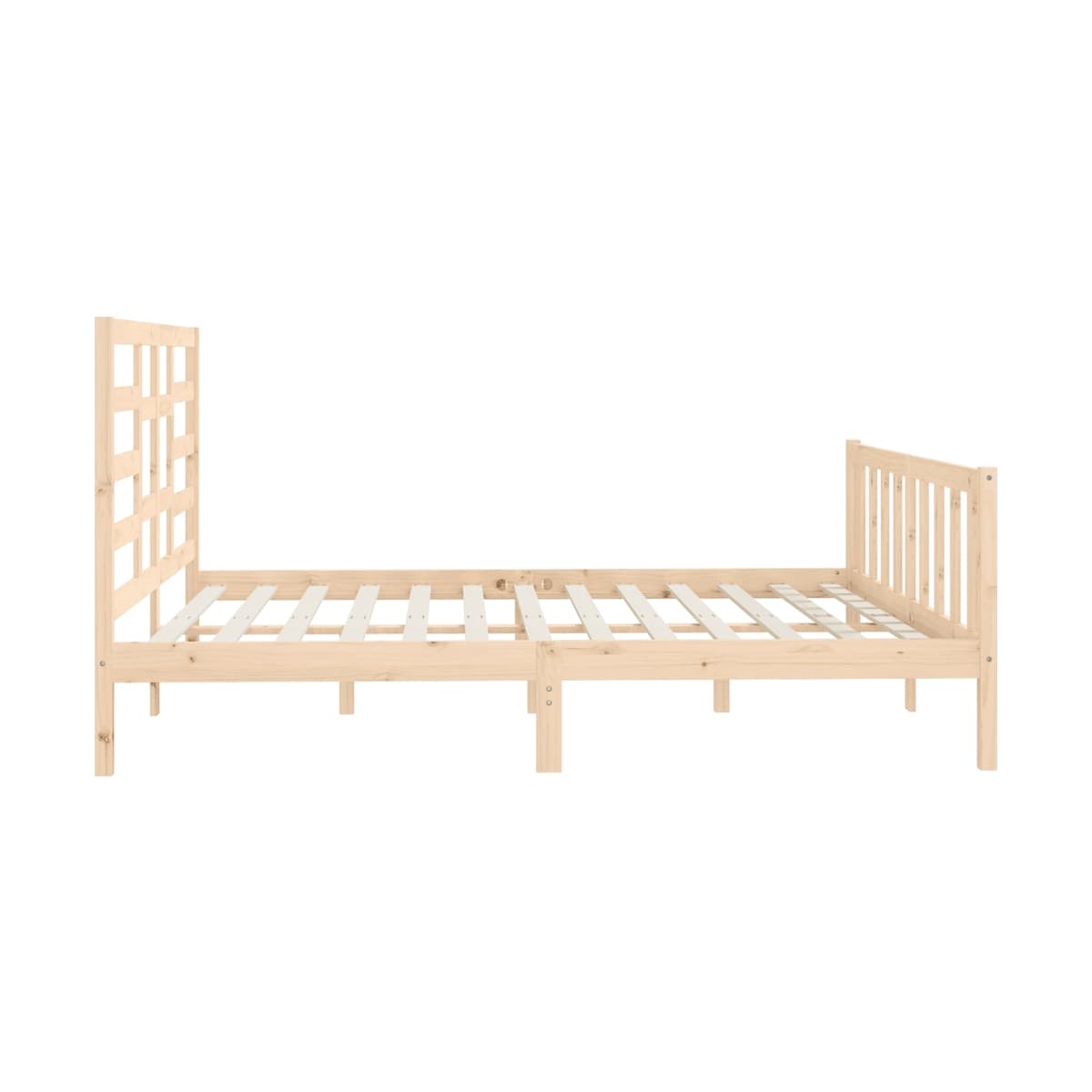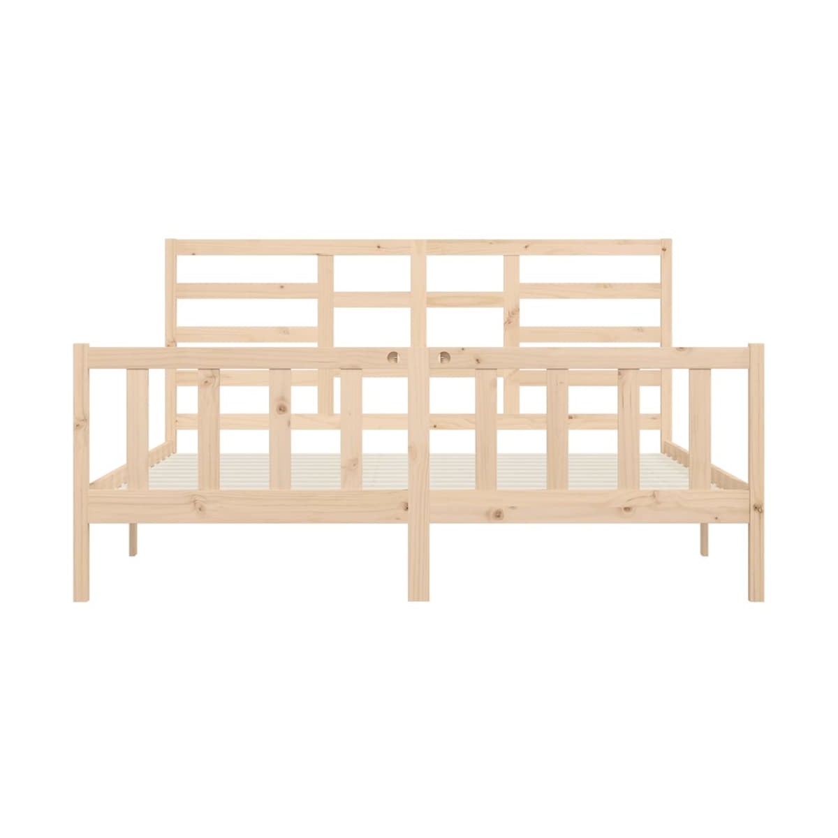 ¡Lleva la ruta moderna a tu dormitorio con esta estructura de cama de madera! Es un aporte práctico y decorativo para tu hogar. Madera de pino maciza: La madera de pino maciza es un bonito material natural. La madera de pino tiene vetas rectas, y los nudos dan al material su distintivo aspecto rústico.Listones robustos: Los listones de madera contrachapada proporcionan una buena distribución del peso, lo que garantiza que el colchón se mantenga en tu sitio con cada giro y vuelta del cuerpo mientras duermes.Diseño llamativo: El diseño del cabecero y del pie de cama, es decorativo y práctico. Añade un estilo y comodidad únicos. Nota:La entrega incluye solo una estructura de cama. El colchón no está incluido. Puedes echar un vistazo en nuestra tienda para buscar colchones a juego.Esta estructura de cama es adecuada para un colchón de 200 x 200 cm