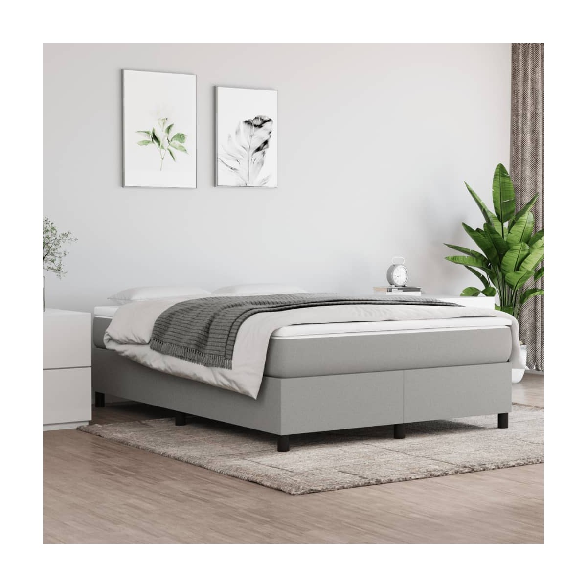 Consigue un sueño más reparador con esta estructura de cama tipo box spring. Es un aporte acogedor para cualquier dormitorio. Material de primera calidad: La tela posee un aspecto sencillo y limpio, y es transpirable y duradera.Patas de apoyo: La cama se apoya en patas robustas, que garantizan su estabilidad, seguridad y firmeza.Listones robustos: Los listones de madera contrachapada proporcionan una buena distribución del peso, lo que garantiza que el colchón se mantenga en tu sitio con cada giro y vuelta del cuerpo mientras duermes. Nota:La entrega incluye solo una estructura de cama. El colchón no está incluido. Puedes echar un vistazo en nuestra tienda para buscar colchones a juego.Cada producto viene con un manual de montaje en la caja para facilitar el montaje.