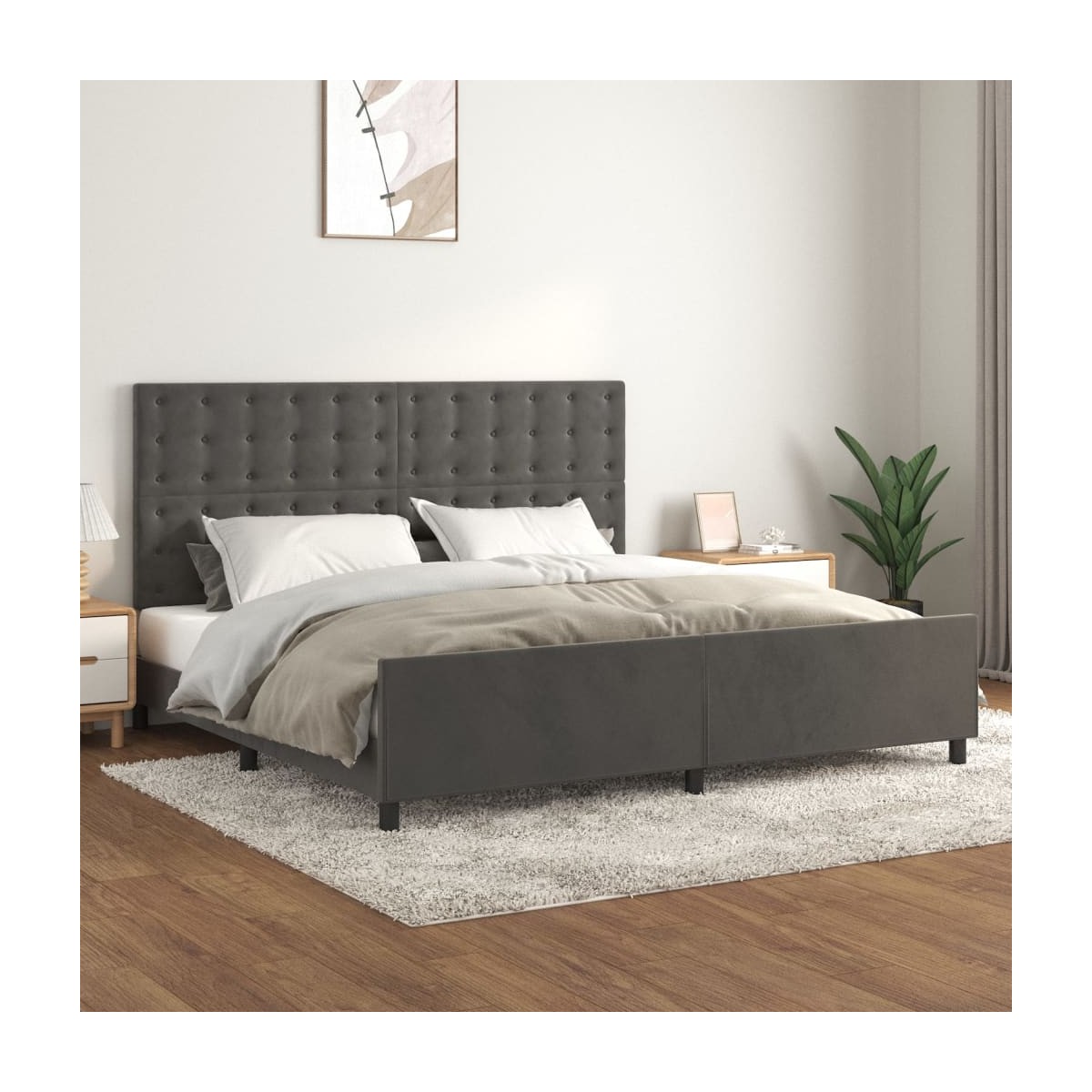 ¡Consigue un sueño más reparador con esta estructura de cama con cabecero! Es un aporte acogedor para cualquier dormitorio. Terciopelo suave: El terciopelo es una tela suave y lujosa, reconocida por su denso pelo de fibras cortadas de forma uniforme que tienen una suave pelusa. La tela de terciopelo posee un característico y suave tacto, lo que hace que sea cómoda al tacto.Altura regulable: El cabecero de la cama es ajustable en altura según tus preferencias.Patas de apoyo: La cama se apoya en patas robustas, que garantizan su estabilidad, seguridad y firmeza.Listones robustos: Los listones de madera contrachapada proporcionan una buena distribución del peso, lo que garantiza que el colchón se mantenga en tu sitio con cada giro y vuelta del cuerpo mientras duermes.Excelente apoyo: El cabecero de la cama te proporciona un excelente apoyo para la espalda mientras estás sentado en la cama para leer o ver la televisión. Nota:La entrega incluye solo una estructura de cama. El colchón no está incluido. Puedes echar un vistazo en nuestra tienda para buscar colchones a juego.Cada producto viene con un manual de montaje en la caja para facilitar el montaje.